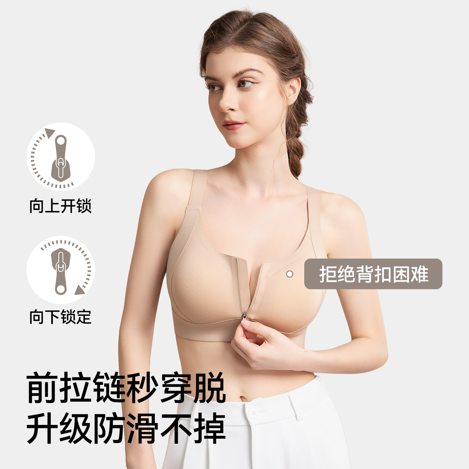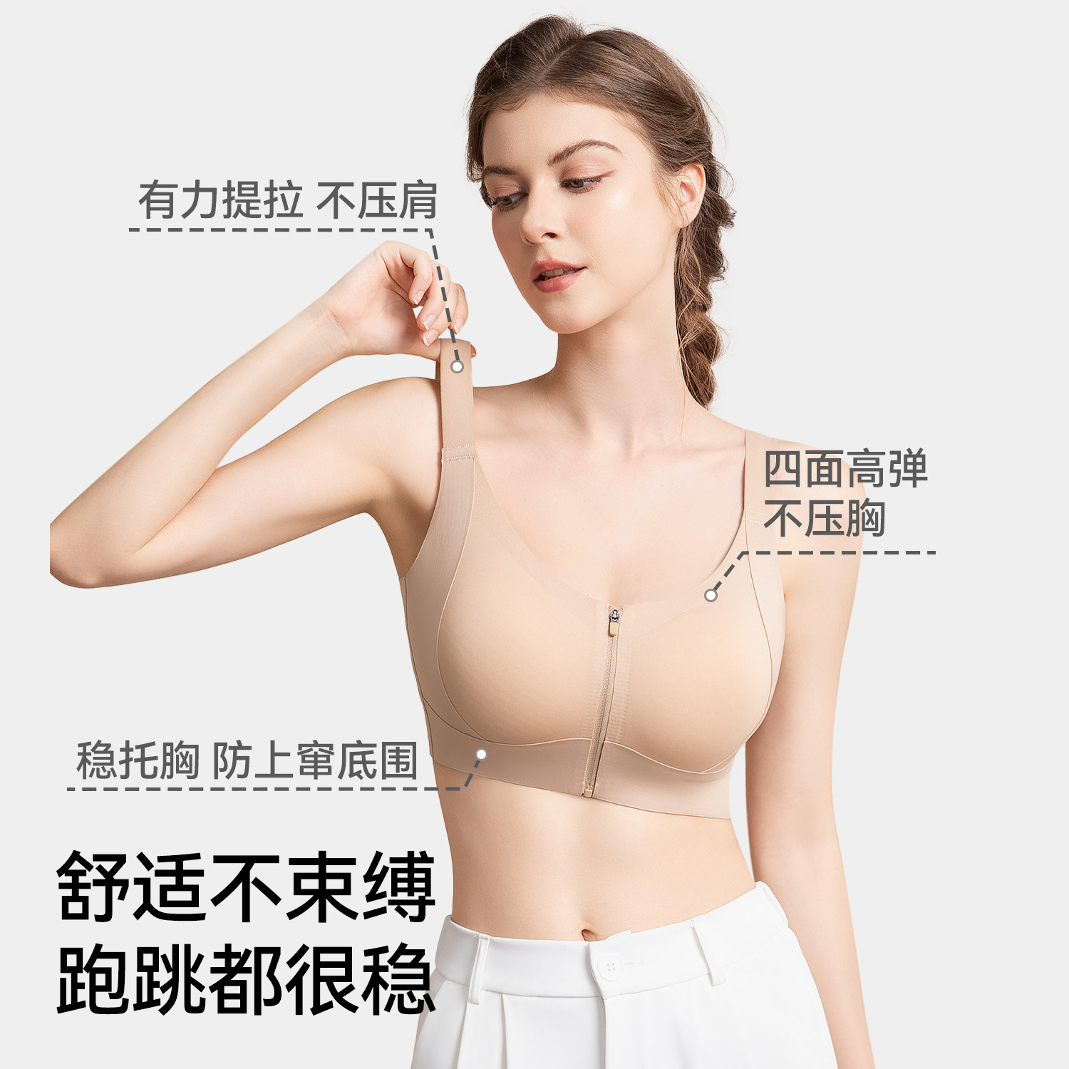 都市丽人前拉链运动内衣女高强度防震外穿背心收副乳跑步健身文胸