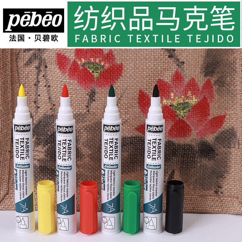 法国pebeo贝碧欧纺织颜料马克笔进口日本产软头勾线笔防水布艺彩绘笔手绘亲子衣服T恤麻布绘画鞋子包棉布上色