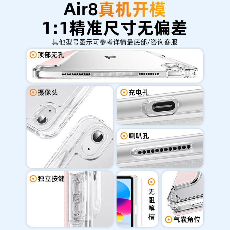 兴菲iPad11代保护壳Air7代11英寸透明亚克力防弯M3Y折2025新款mini6带笔槽硬壳全包软边Pro防摔苹果第10平板9