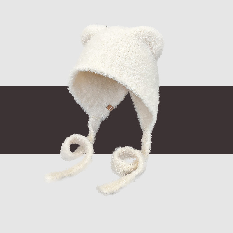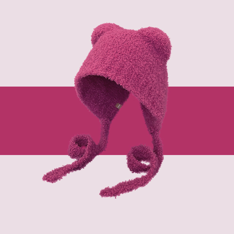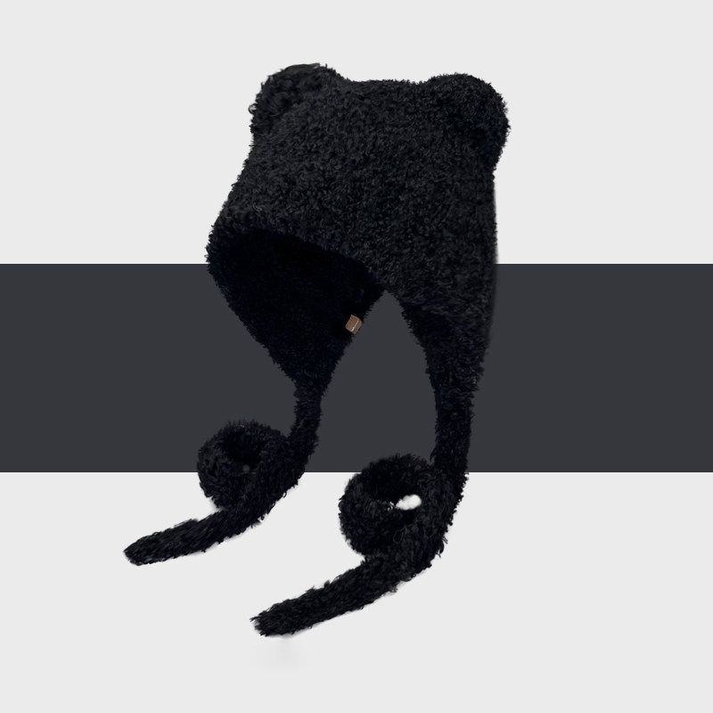 Classy key新加坡设计师联名款毛绒绑带护耳套头帽小熊耳朵雷锋帽