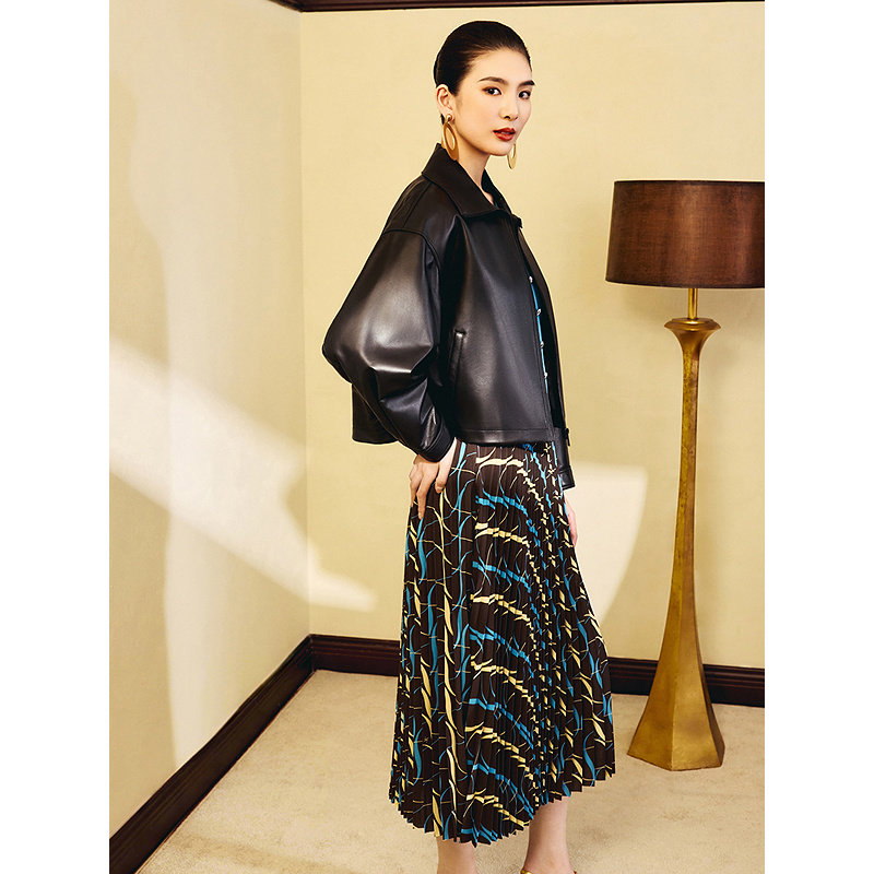【1996系列】YINER音儿2025秋季新款哑光绵羊真皮蝙蝠袖皮衣夹克