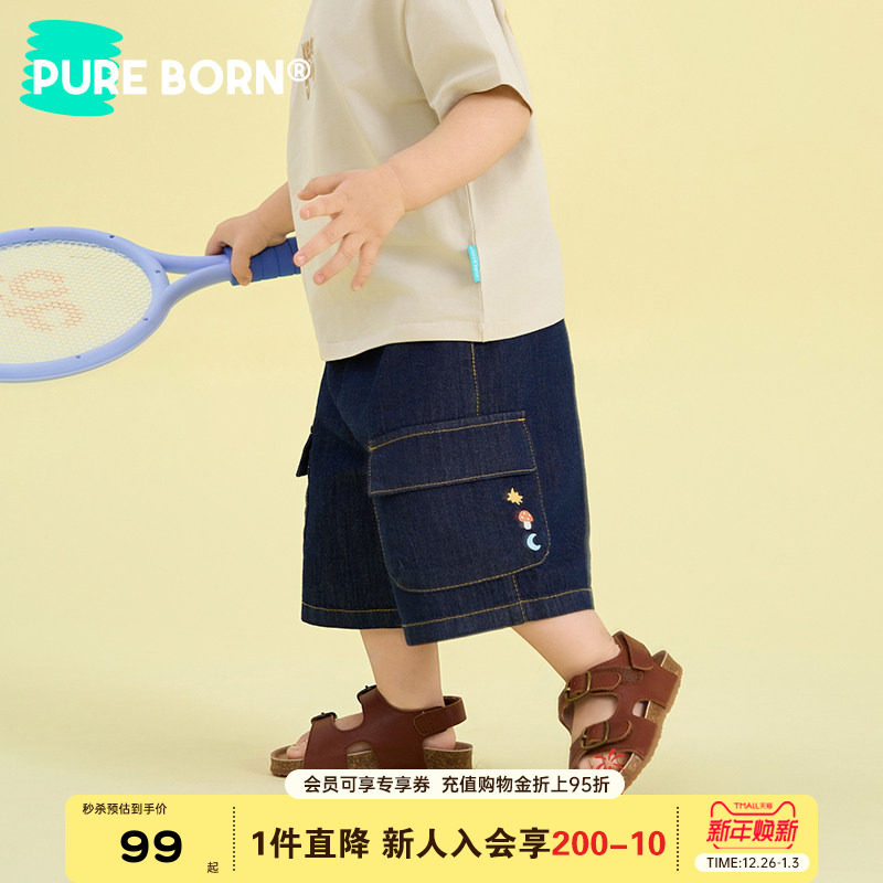 博睿恩女童短裤2025夏季新薄款男童宝宝软牛仔裤短裤外穿夏阔腿裤