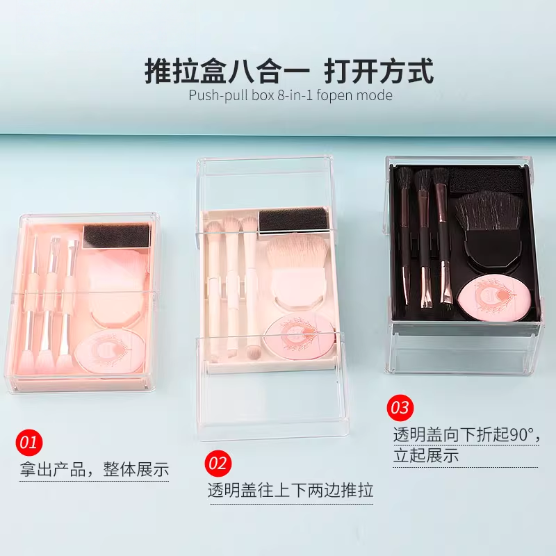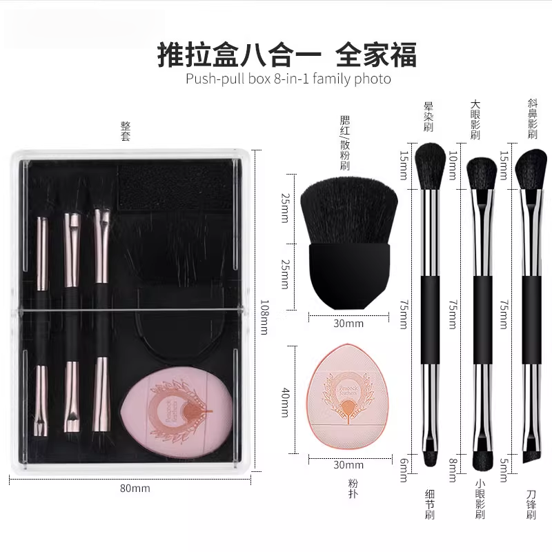 新款化妆刷套装便携式8支套收纳盒迷你眼部眼影刷散粉刷美妆工具