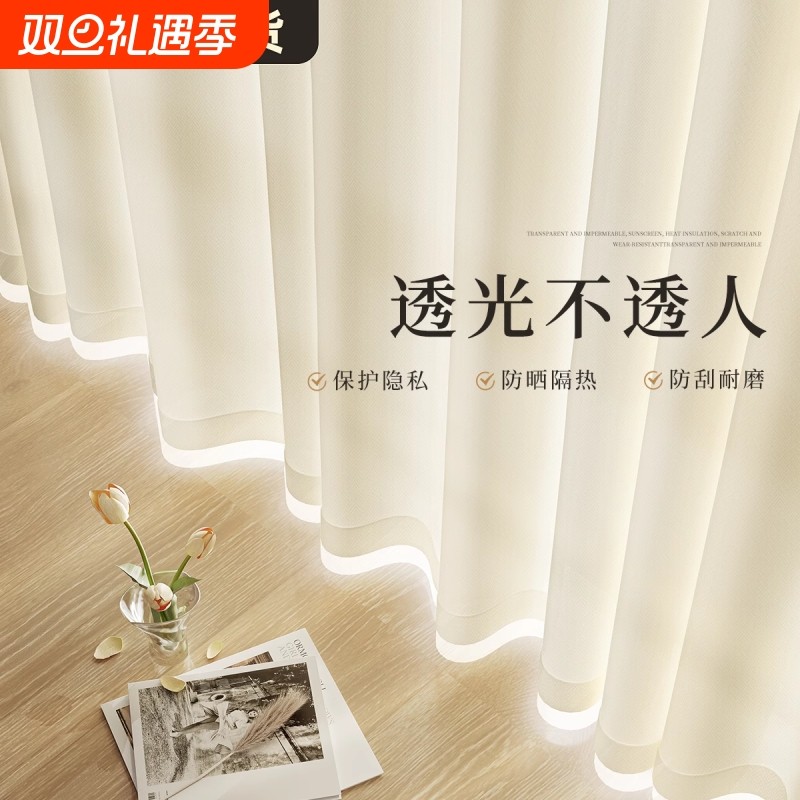 法式奶油风纱帘幻影纱透光不透人客厅阳台防晒窗帘轻奢飘窗窗纱布
