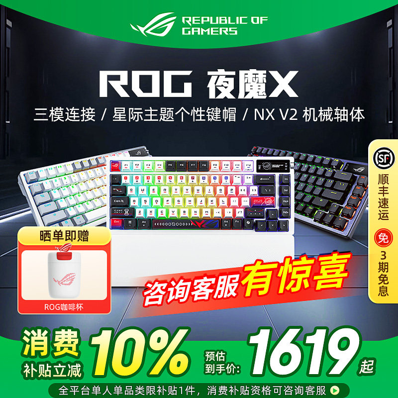ROG夜魔 夜魔X客制化三模无线机械键盘电脑电竞游戏专用OLED屏幕