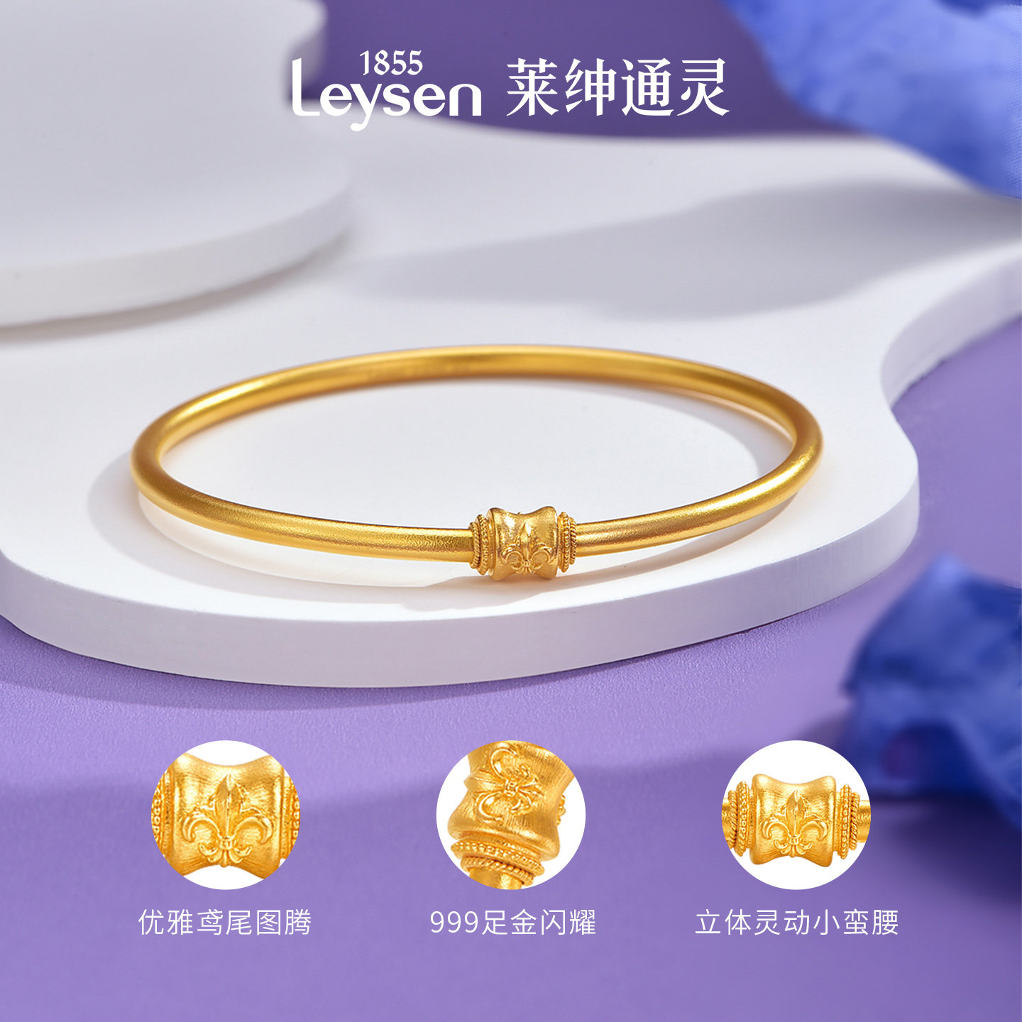 【计价金】莱绅通灵传世金 鸢尾系列 鸢尾小蛮腰足金999手镯