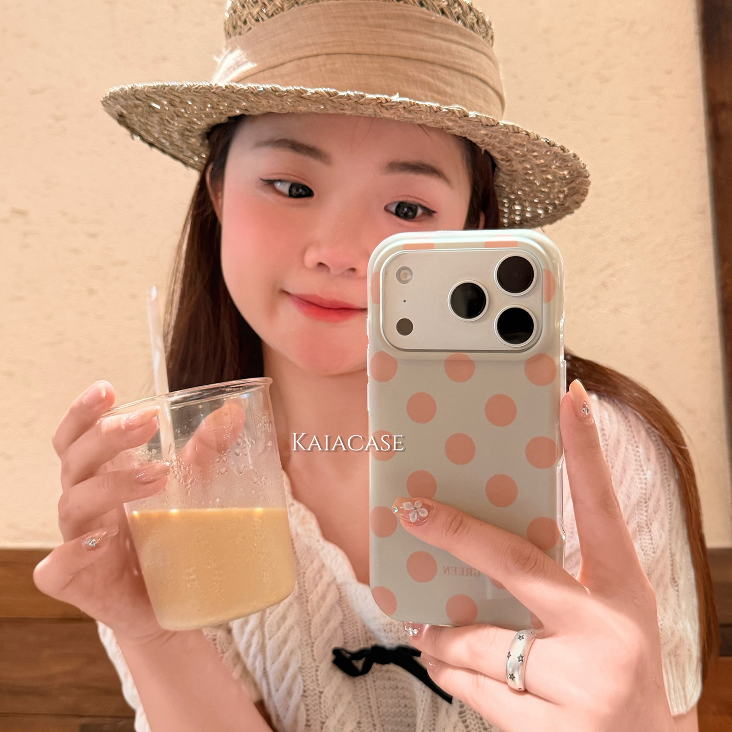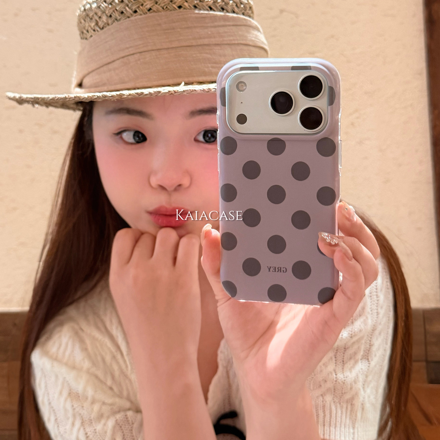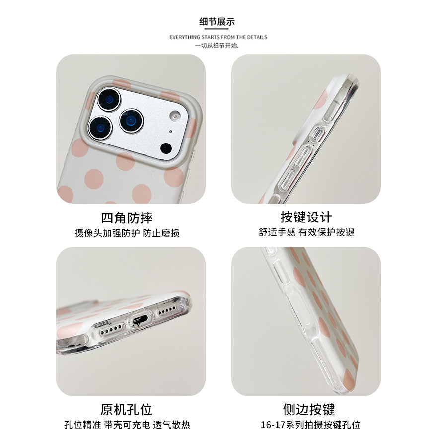 kaia 日韩ins小清新简约纯色波点适用苹果17promax手机壳iphone16pro新款13女14pro创意15pro磨砂防摔手机套