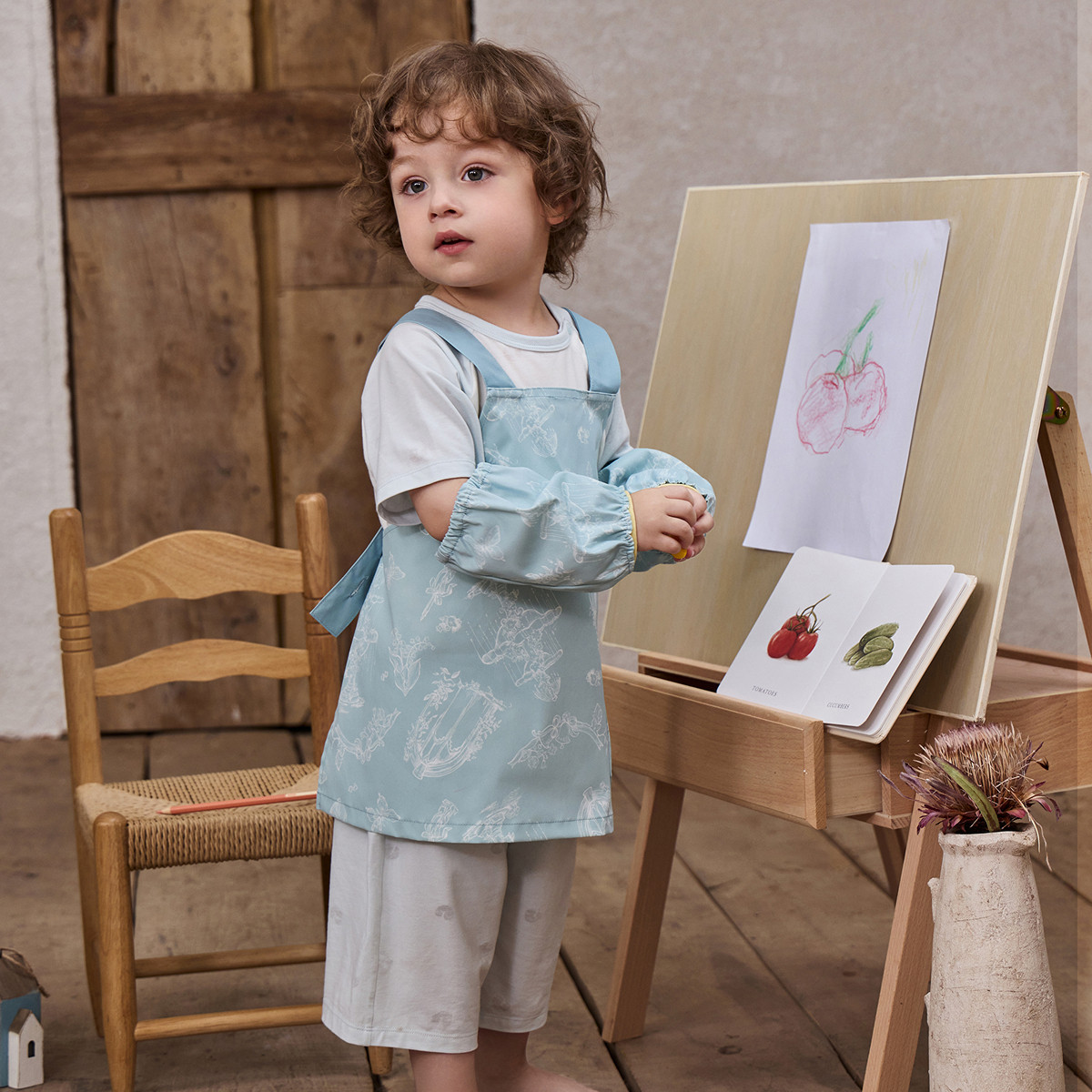 迷你巴拉巴拉婴儿罩衣辅食防水男女手工课围裙反穿衣三防北欧风