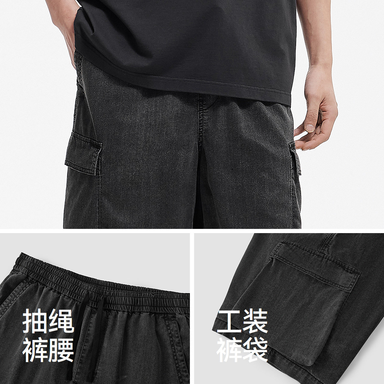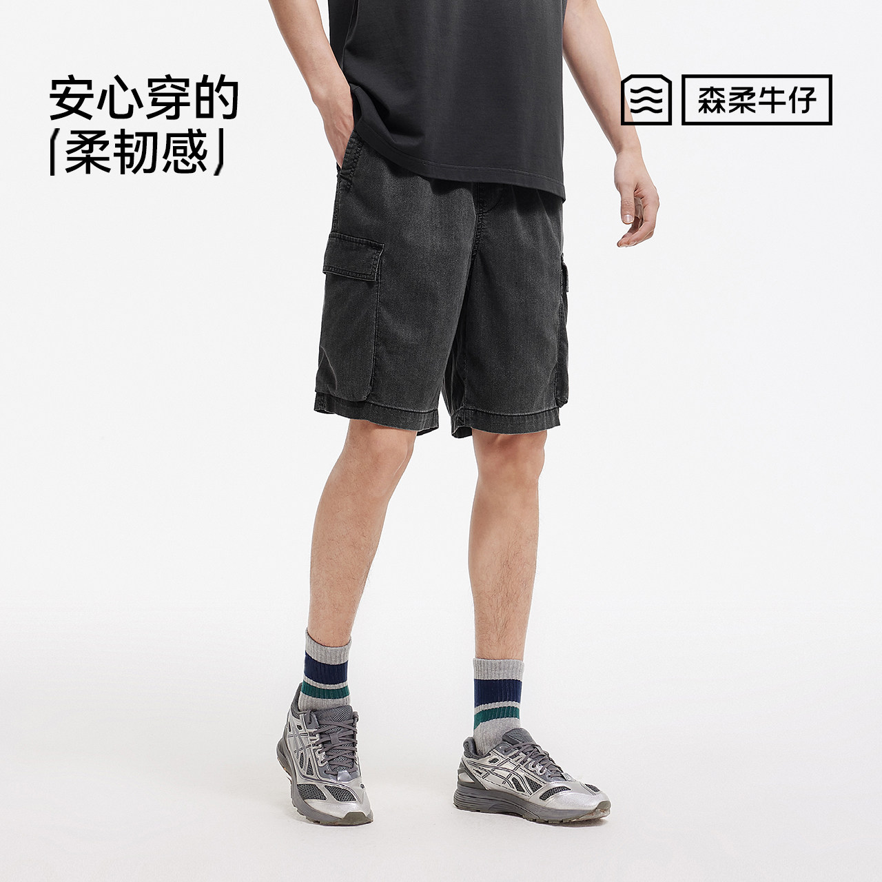 森柔|森马牛仔裤男夏季宽松直筒工装裤轻薄舒适裤子抽绳百搭短裤