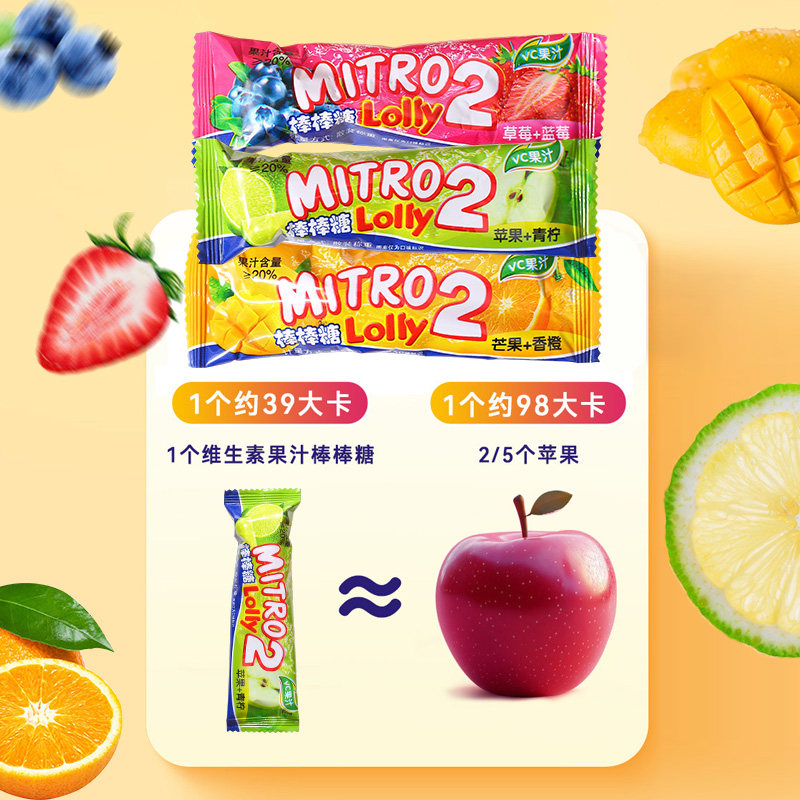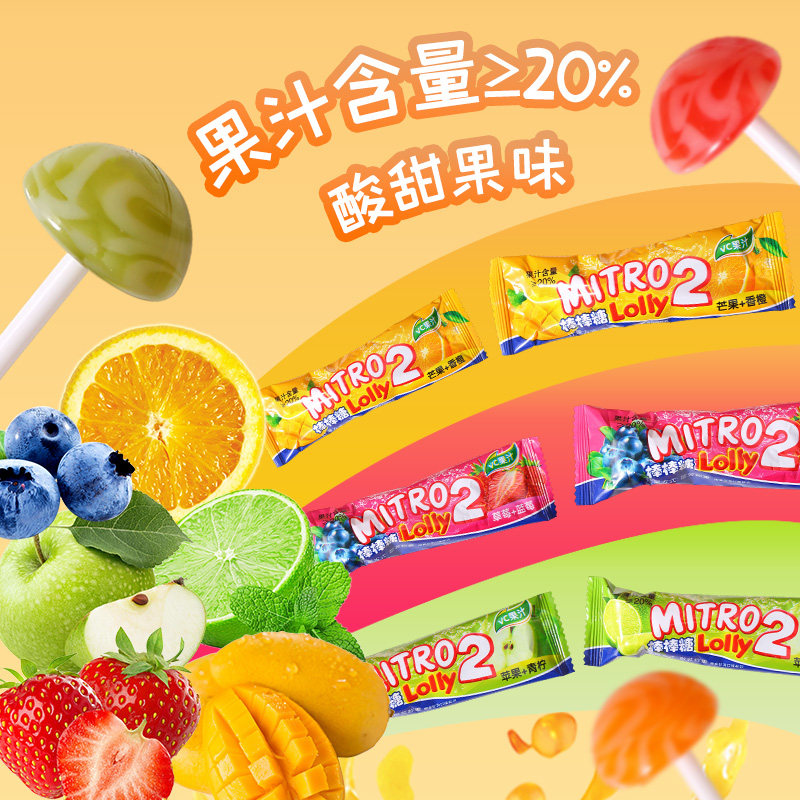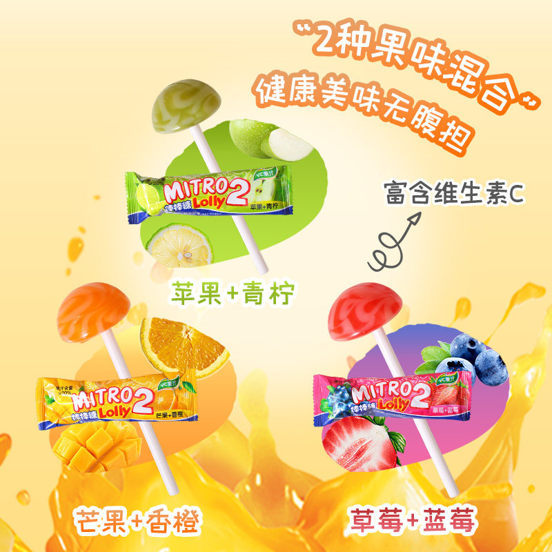 MITRO Lolly2双味果汁棒棒糖蓝莓草莓双重口味儿童糖果网红零食