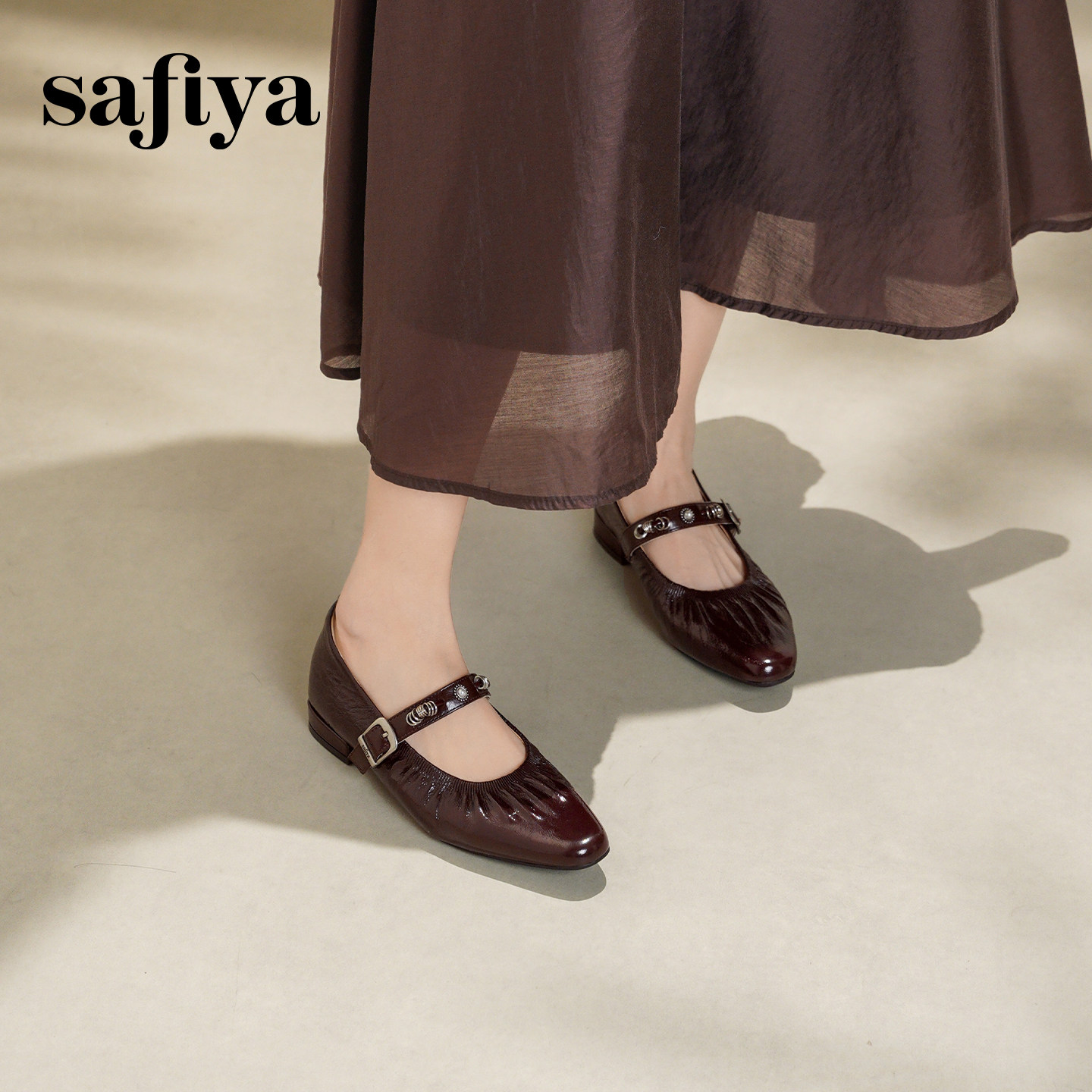 索菲娅2026春季新品法式真皮透气一字扣铆钉褶皱气质尖头玛丽珍