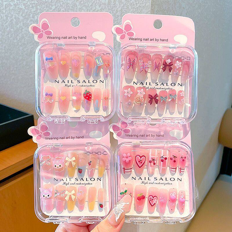 卡通儿童穿戴甲长款显白女童指甲贴2025新款中大童美甲贴儿童发圈