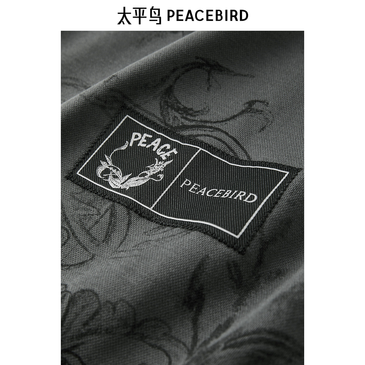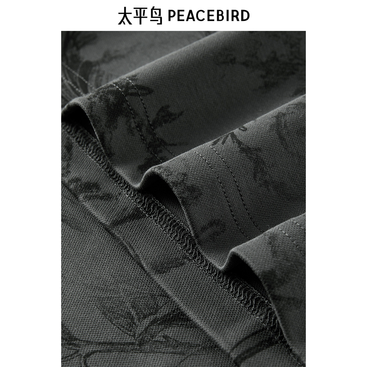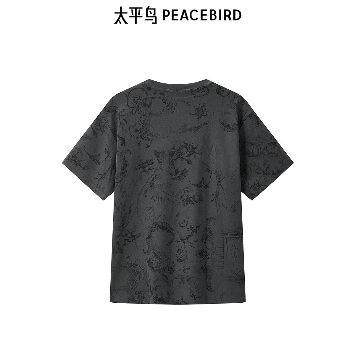 太平鸟男装 深灰色短袖体恤秋季重磅印花圆领刺绣T恤男