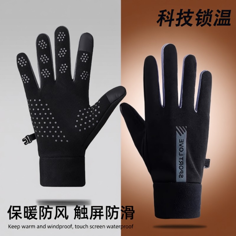 骆驼手套冬季男士户外跑步运动防寒薄绒保暖女可触屏防滑骑行手套