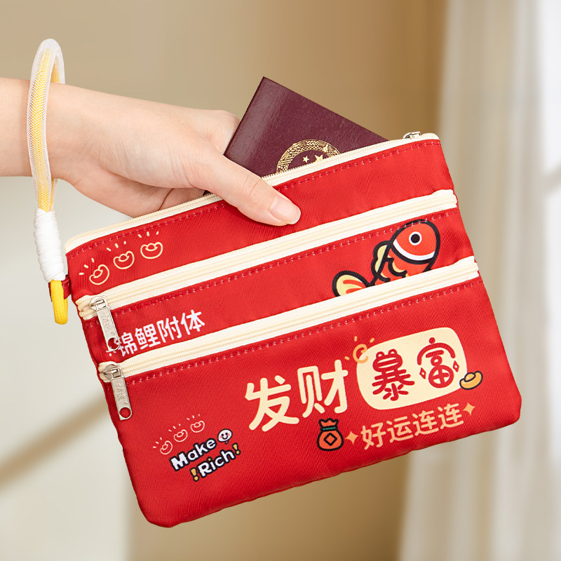 发财暴富主妇零钱包证件袋旅行护照夹收纳包机票便携多功能随身便携登机牌零钱一体卡包保护套小号文件袋