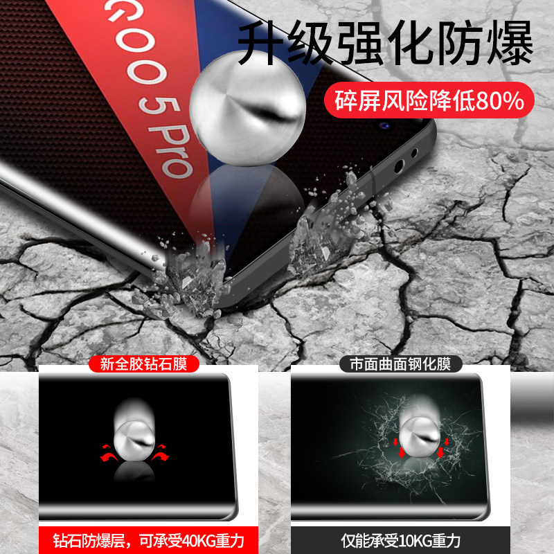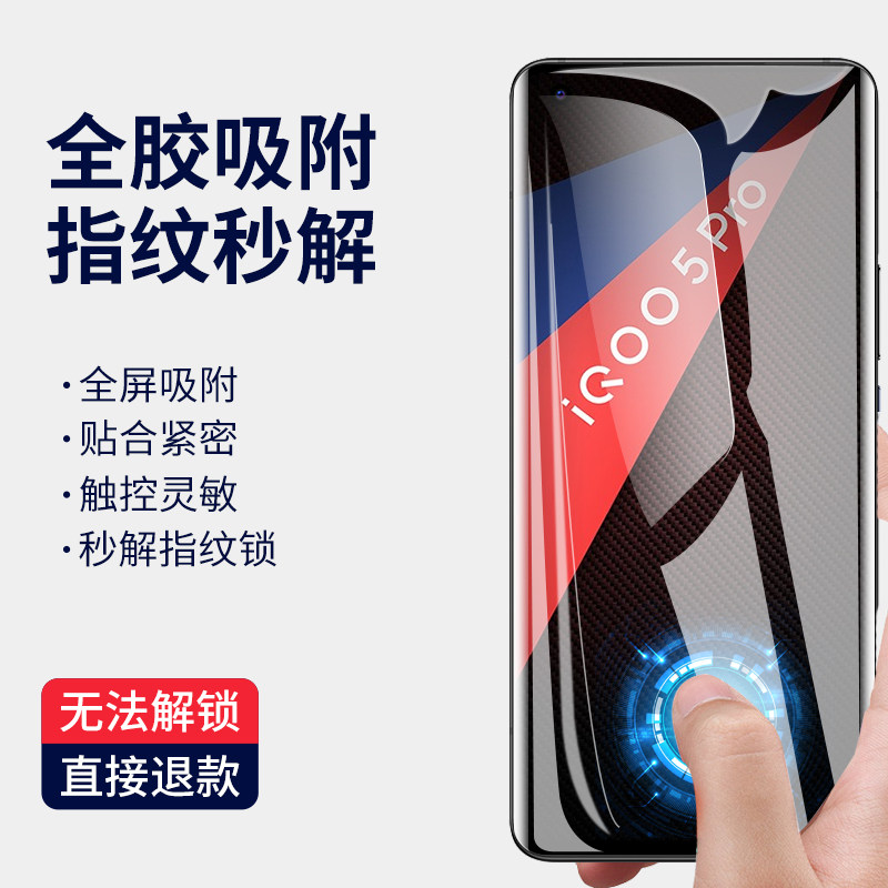 iqoo5pro钢化膜全胶vivoiqoo5手机膜vivo全屏覆盖icoo5传奇版iq005曲屏全包por无黑边ipoo电竞比赛专用uv