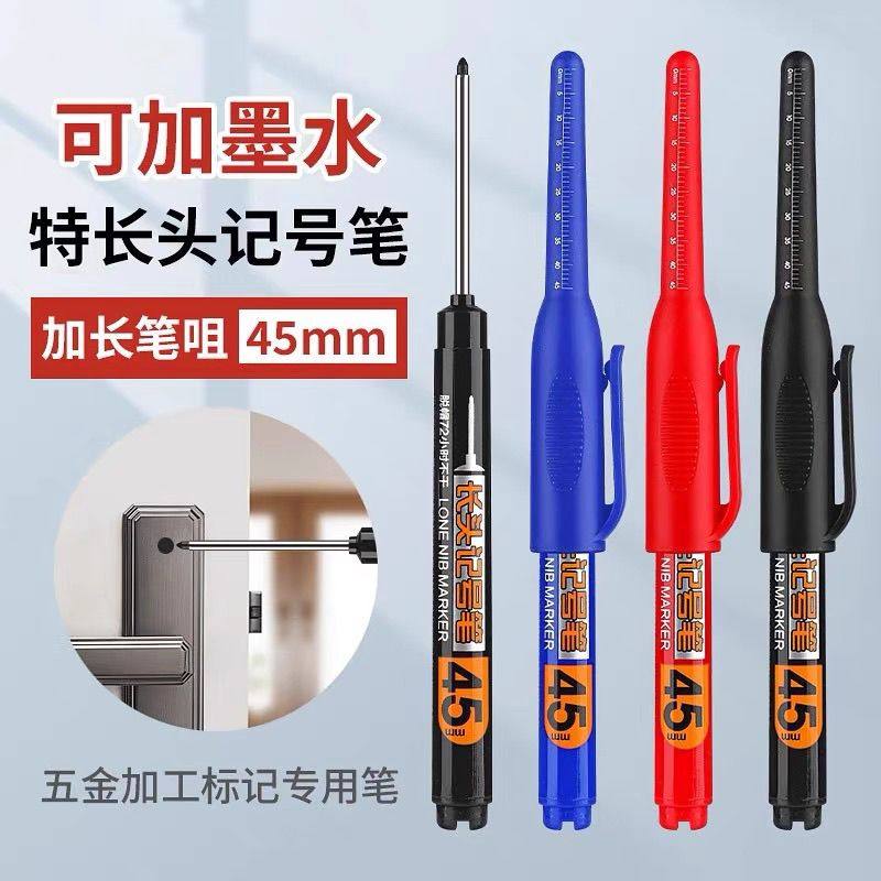 长头记号笔可加墨油性防水防油不掉色加长深孔瓷砖木工标记专用笔