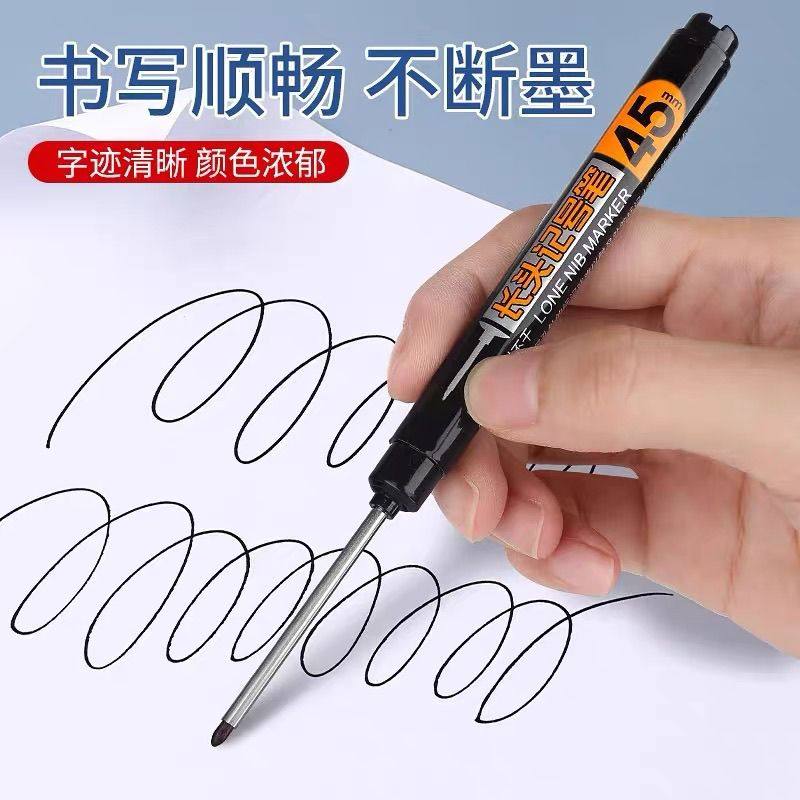 45mm长头记号笔黑色可加墨防水防油不掉色油性笔专用木工瓷砖卫浴