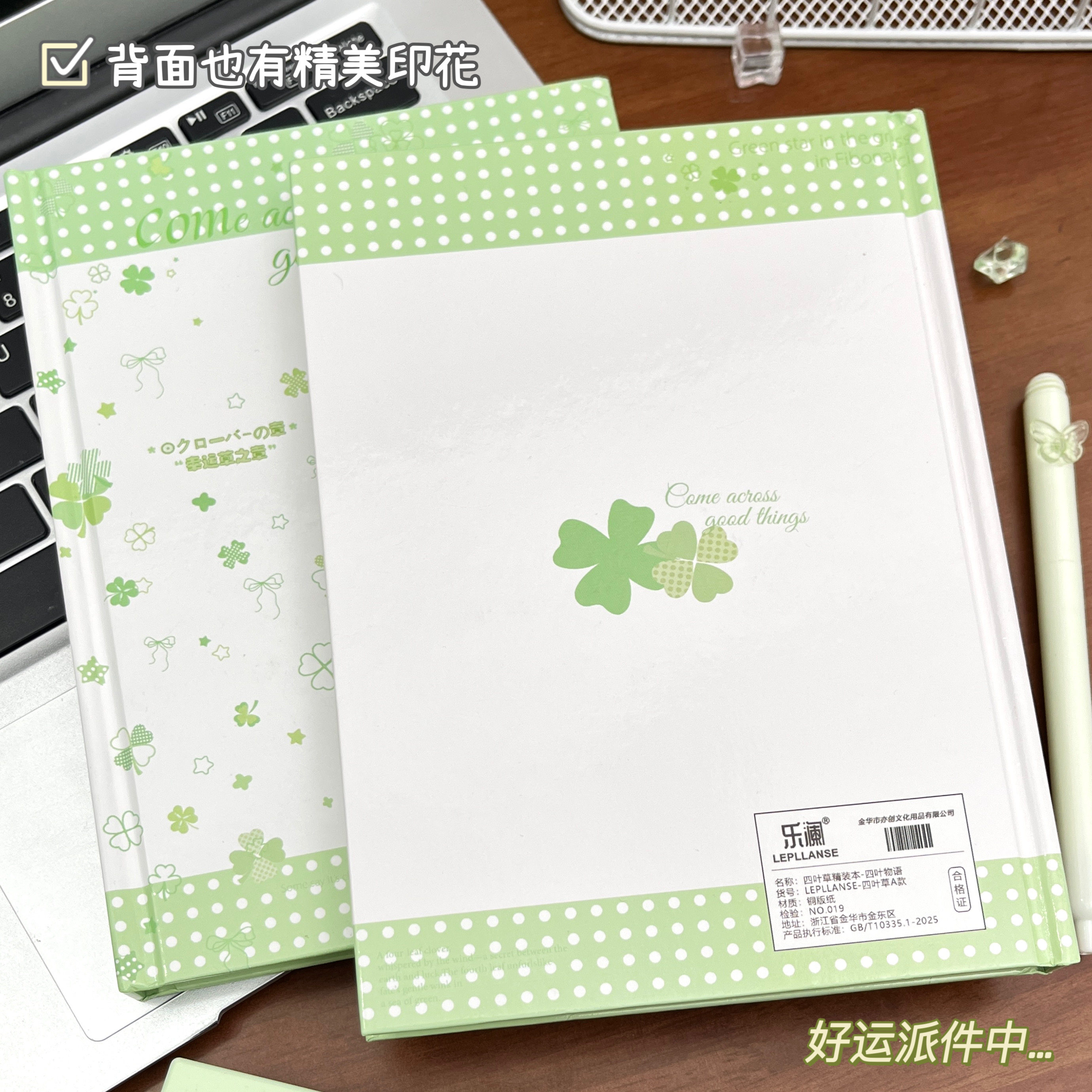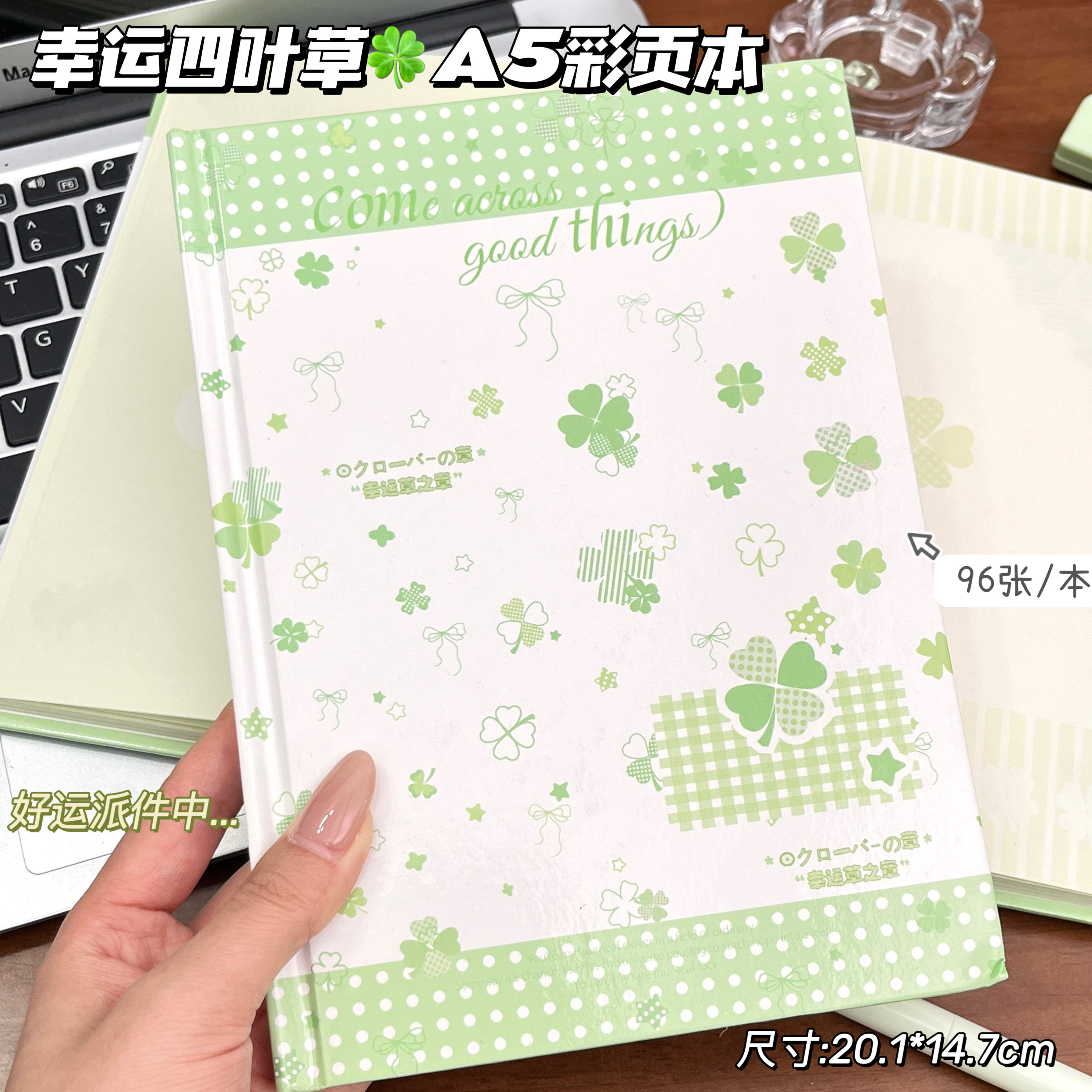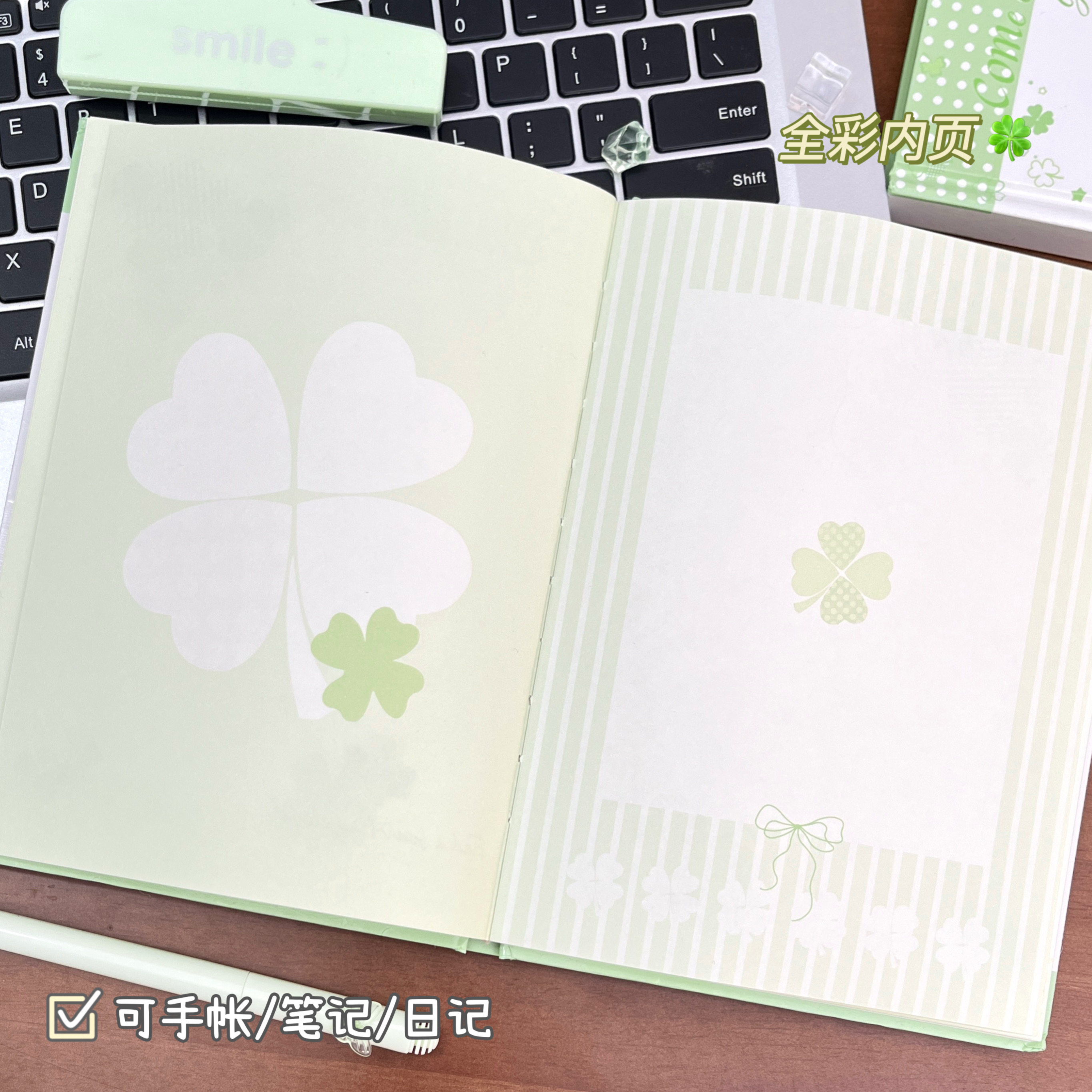新款幸运四叶草A5彩页本笔记本学生文具96张甜美记事本高颜值创意手账本多功能手账素材笔记本子小清新初中生