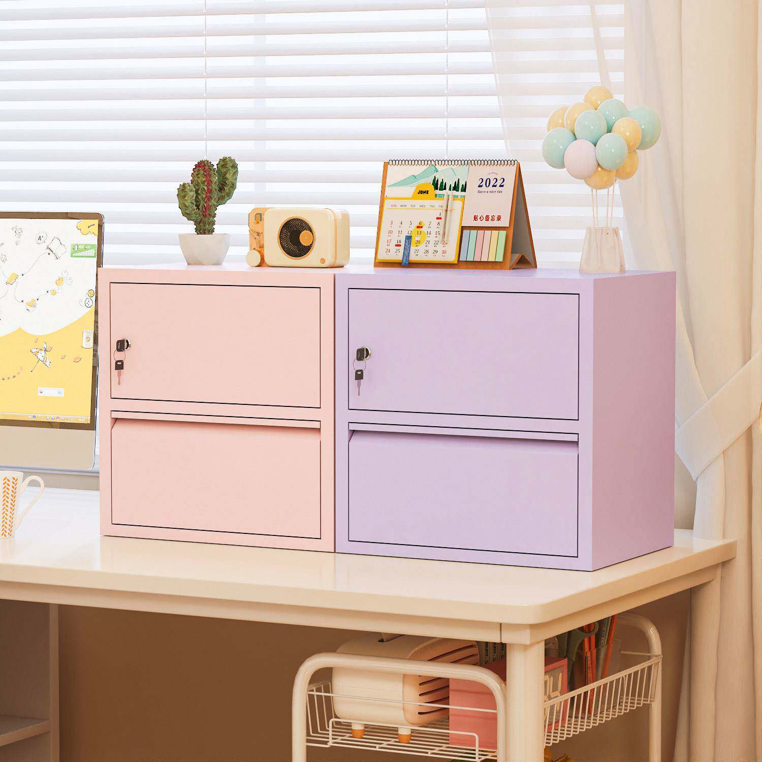 桌面铁皮柜密码箱办公室工位带抽带锁A4纸文件收纳置物架财务公章