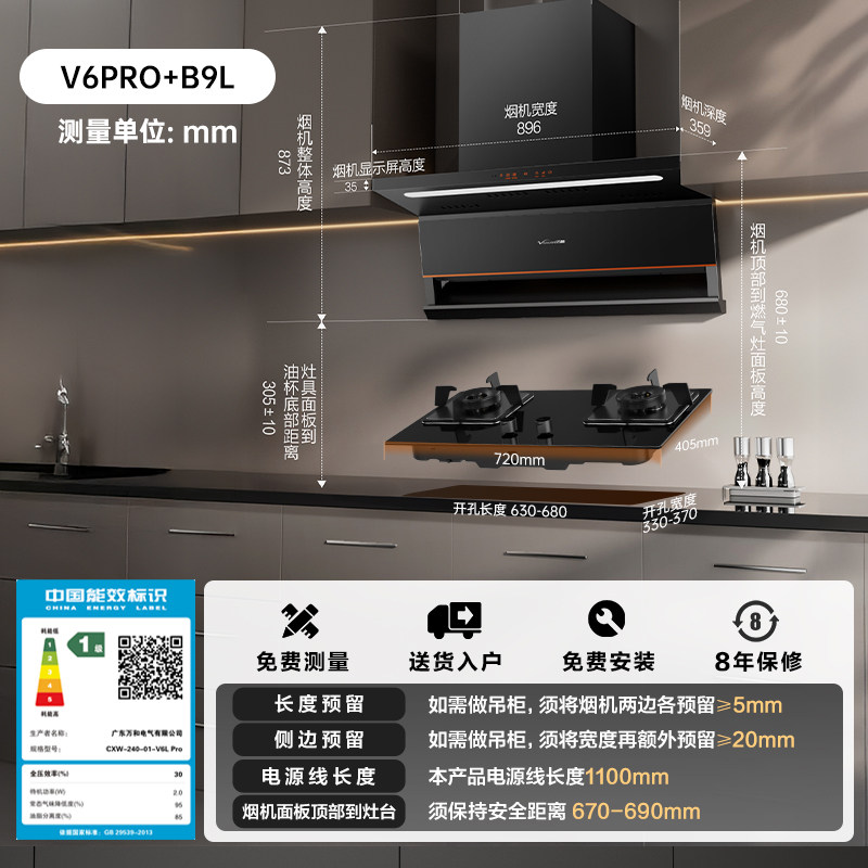 万和顶侧家用厨房大吸力以旧换新吸油烟机灶具抽油烟机套装V6LPRO