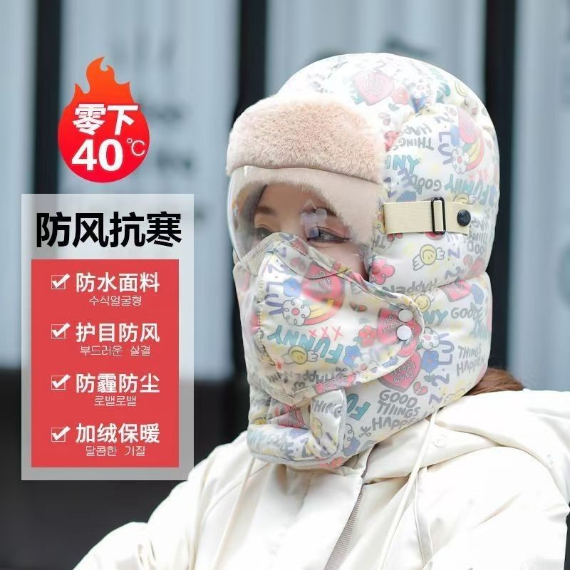 帽子女冬季加绒加厚防风面罩保暖神器电动车骑行男头套棉帽雷锋帽