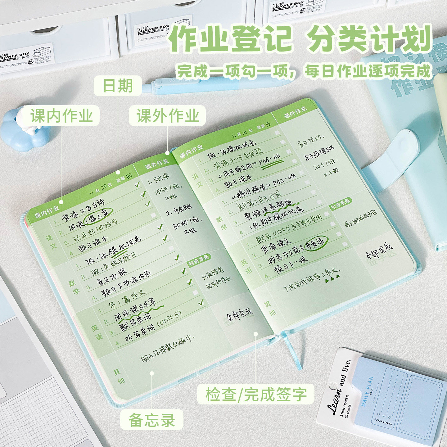 三年二班 作业登记本小学生记作业本卡通可爱抄作业本一年级二四年级家庭作业迷你本子作业记录本家校联系本
