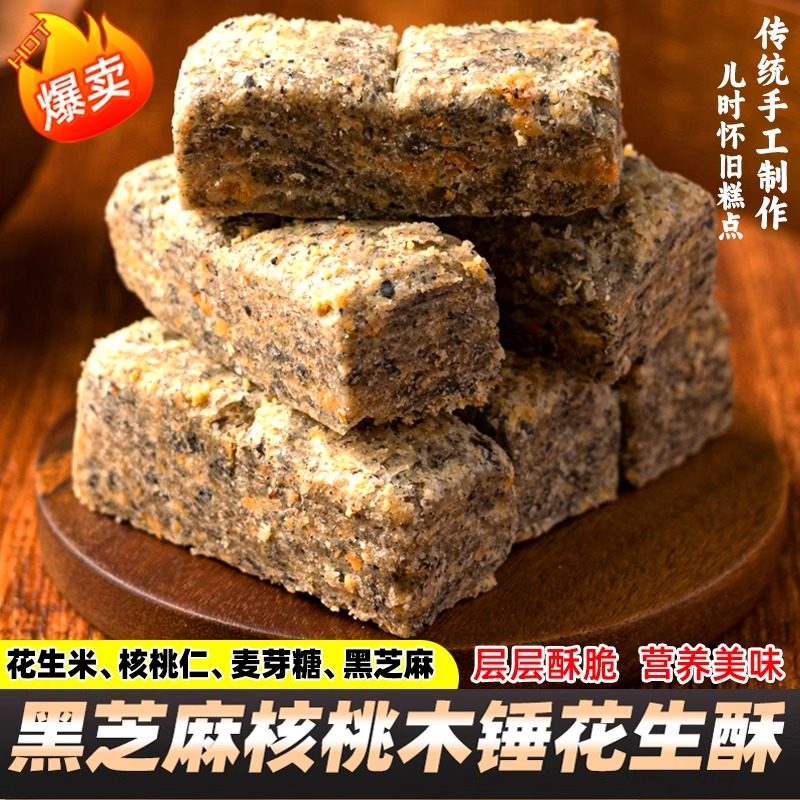 黑芝麻核桃木锤花生酥安徽特产正宗巢湖传统老式花生酥零食糕点心
