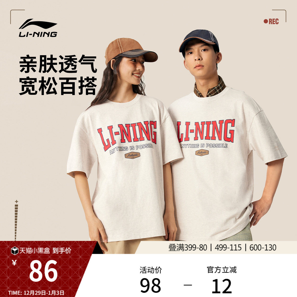 李宁短袖男夏季官方新款情侣半袖圆领休闲体恤宽松上衣运动T恤女