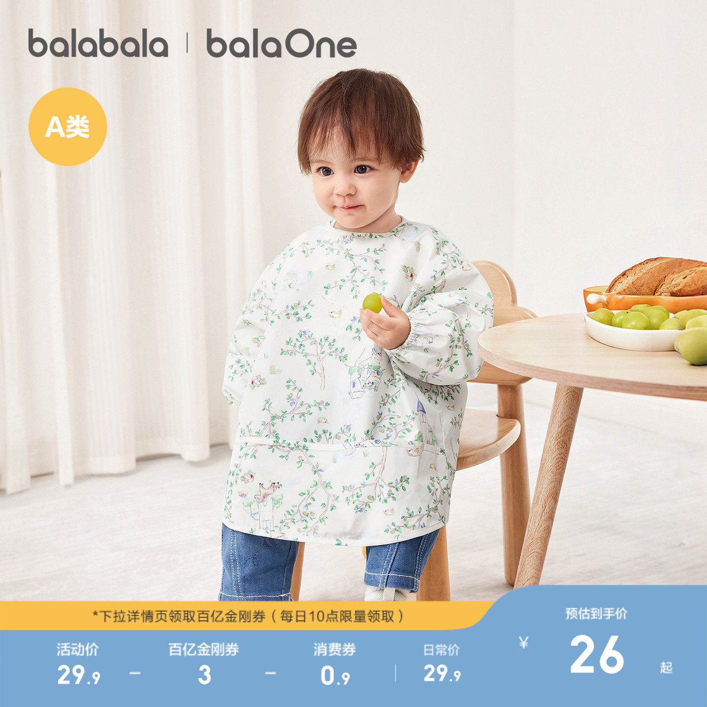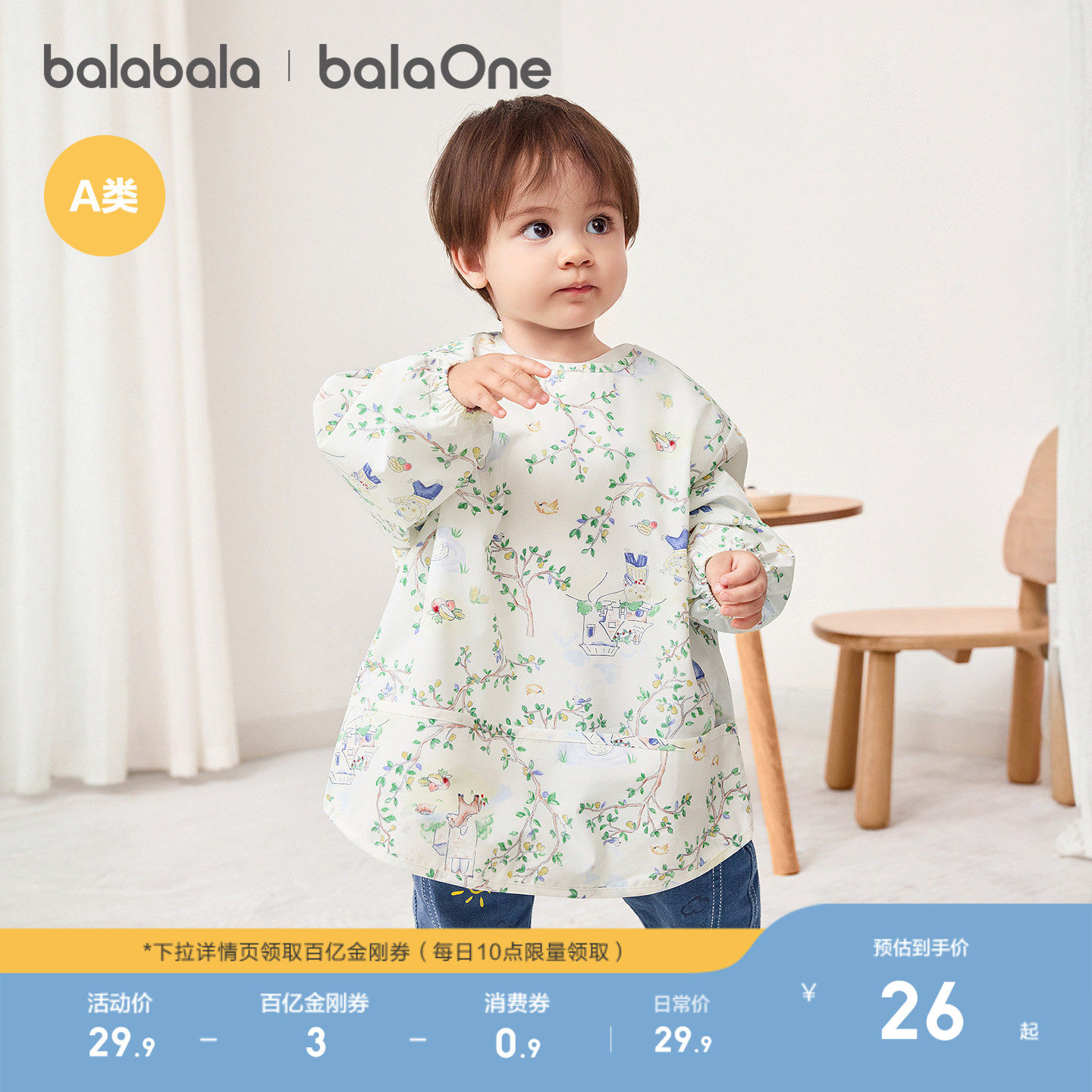巴拉巴拉儿童婴儿宝宝罩衣防脏反穿可外穿吃饭围兜防泼水轻薄洋气