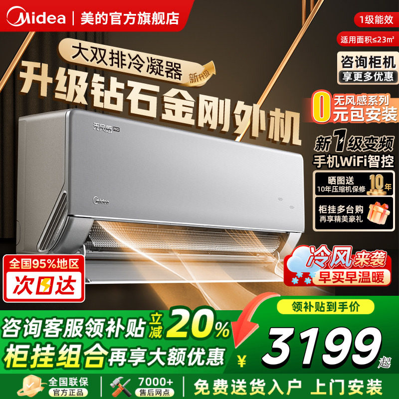 美的空调无风感WFPro母婴级大1.5匹冷暖一级变频挂机官方旗舰店