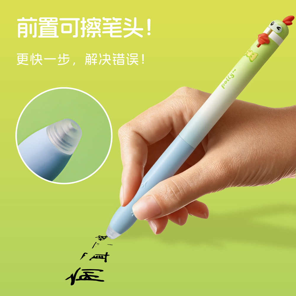 东米2519萌宠鹦鹉可擦笔小学生专用三年级热可擦按动中性笔ST笔尖黑色高颜值ins摩易擦魔力擦水笔圆珠笔笔芯