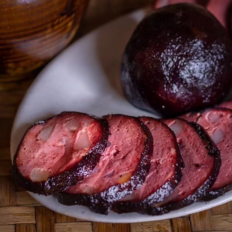 湖南特产武冈土特产猪血丸子烟熏柴火多肉圆子猪血粑粑血豆腐邵阳