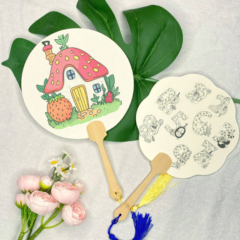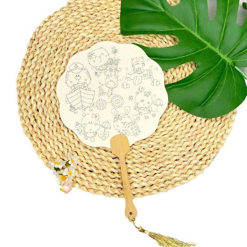 2025彩色绘画扇DIY亲子手工制作卡通填色团扇绘画素材包完美套装