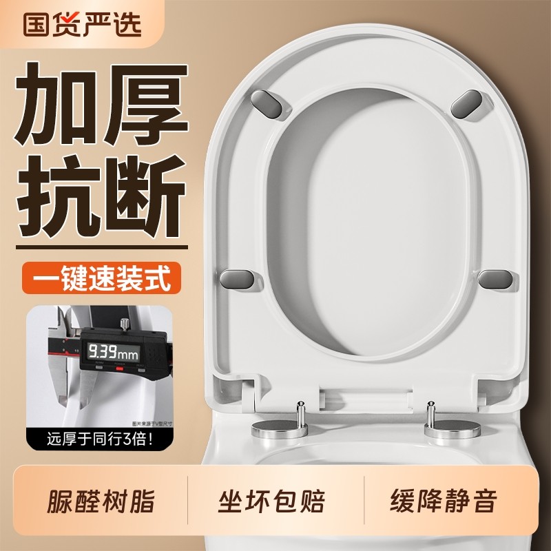 马桶盖家用通用加厚坐便器盖板老式U型V型马桶圈坐便盖子配件方形