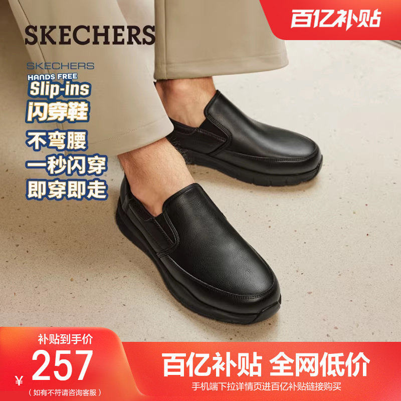 斯凯奇闪穿鞋2025秋冬软底皮鞋工作鞋一脚蹬休闲男鞋黑色商务皮鞋
