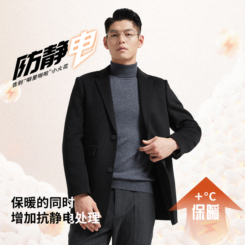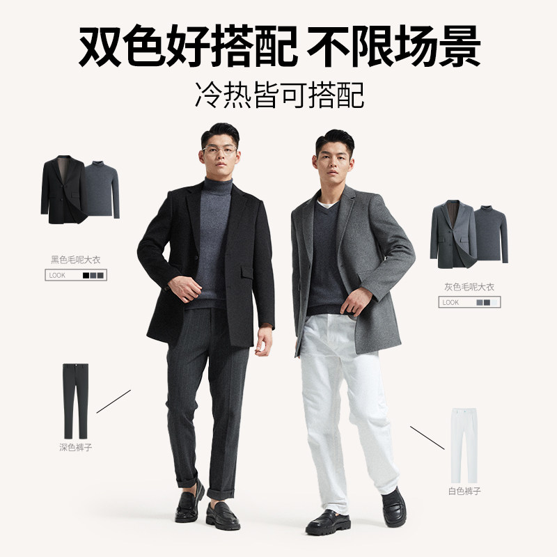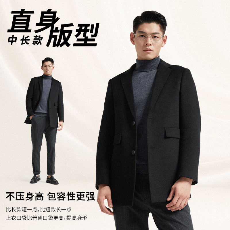 【100%绵羊毛】报喜鸟柴斯特斜纹中长款男大衣堑壕双面呢短款外套