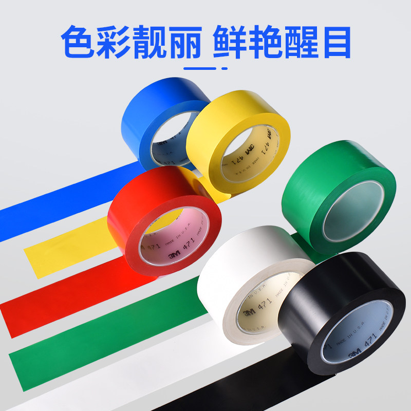 3m471地板面专用胶带5S定位标识斑马线黑黄白彩色警戒pvc警示胶带