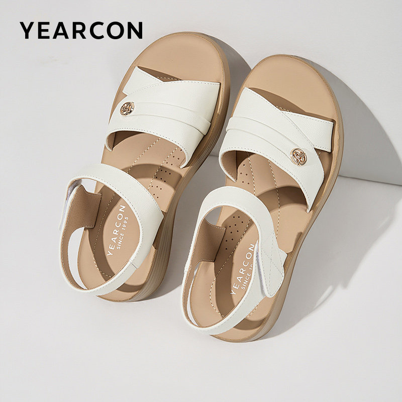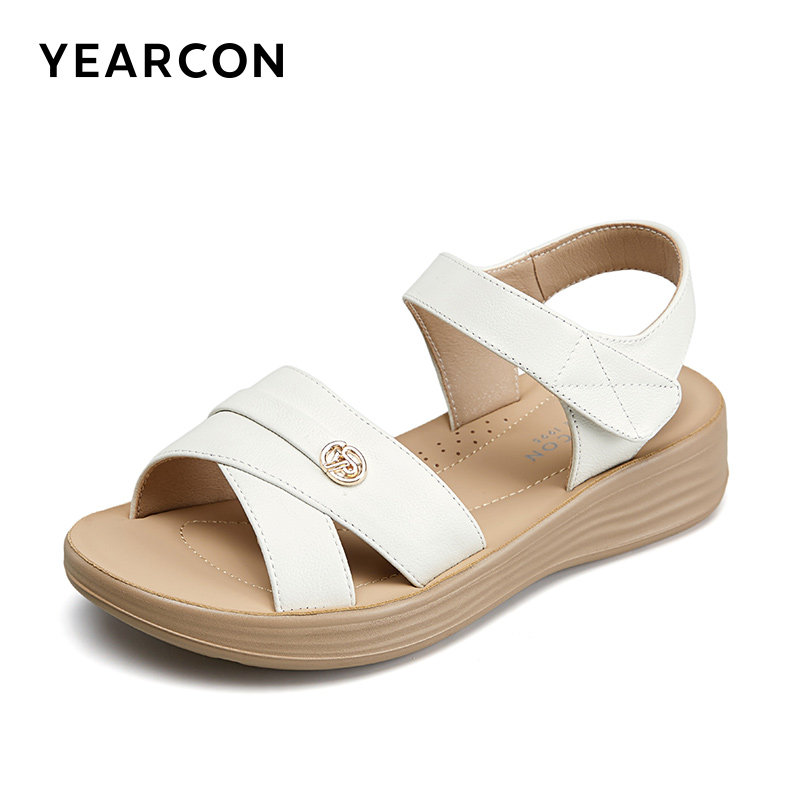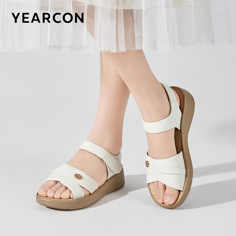 意尔康女鞋女士夏天真皮舒适坡跟妈妈凉鞋软底外穿中老年母亲老人