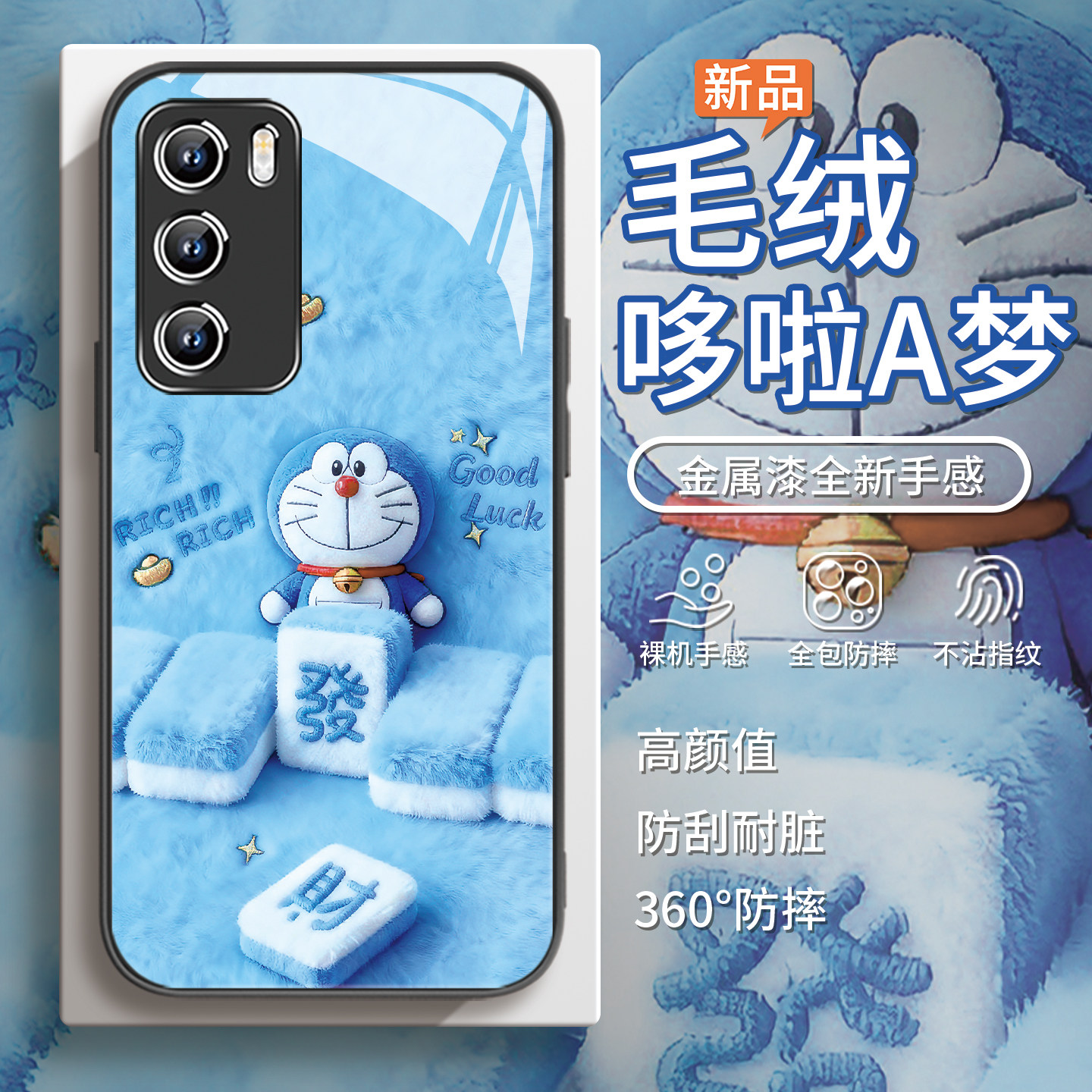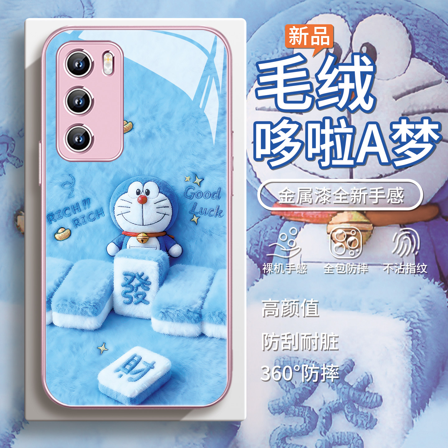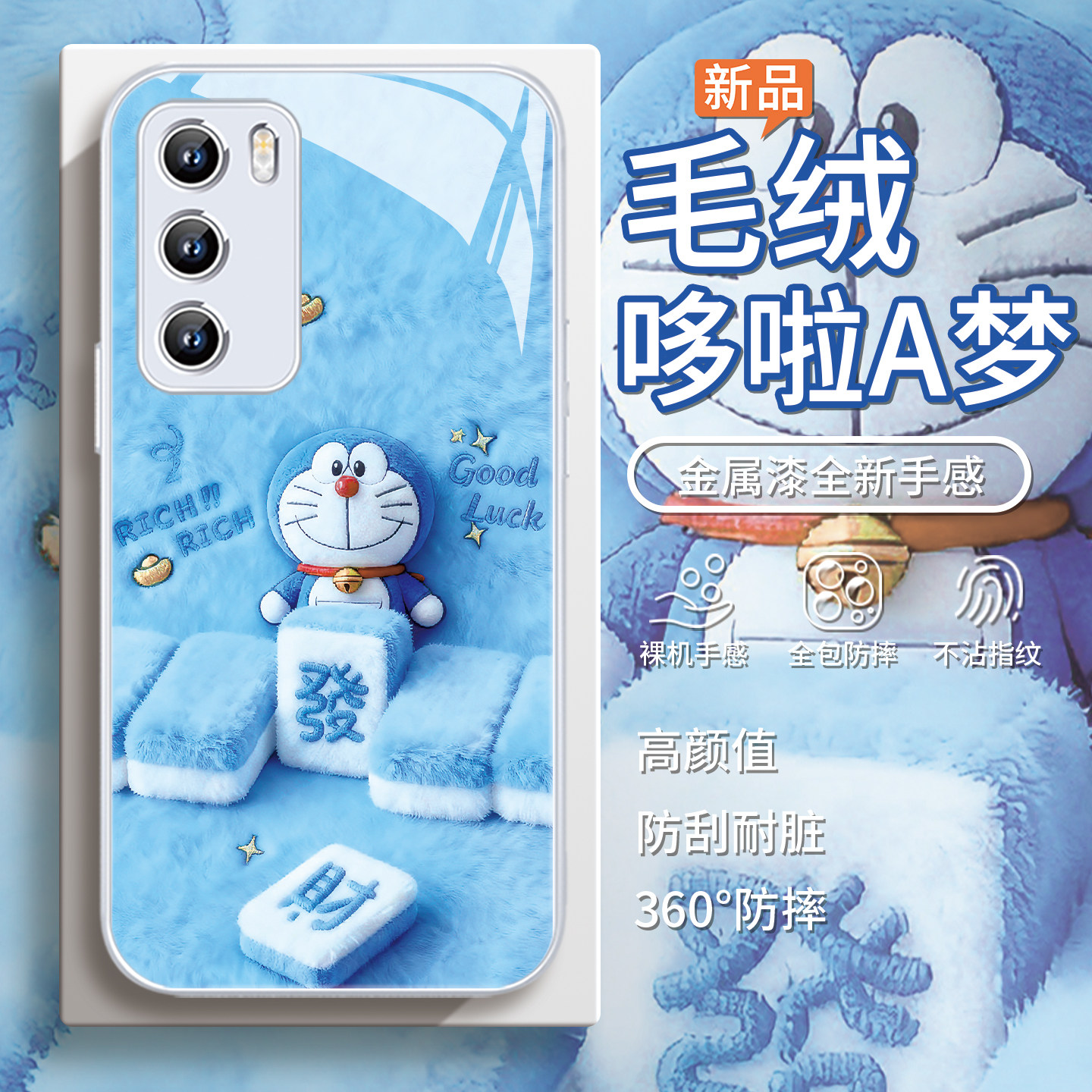 适用毛绒小米17手机壳opporeno15哆啦A梦findx9发财vivos30麻将x300小叮当红米k90新年iqoo13冬季k80蓝胖子12