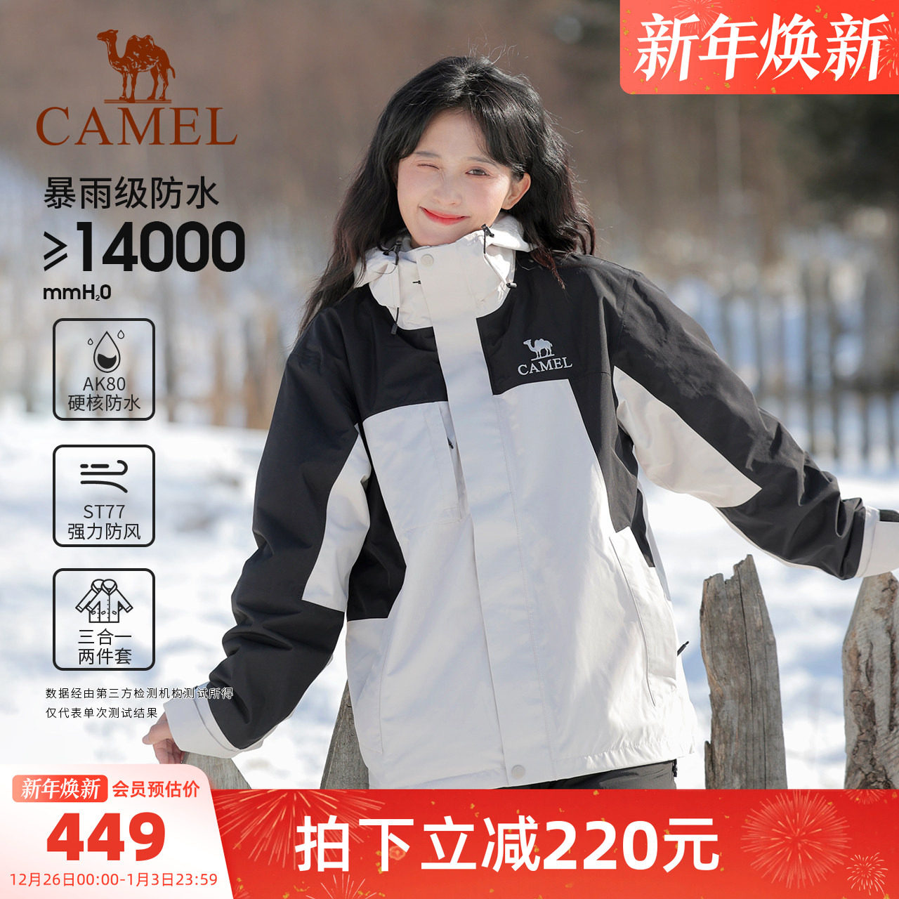骆驼户外雨神冲锋衣男三合一羽绒服冬季防水外套女三防旅游滑雪服
