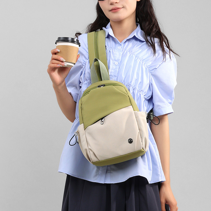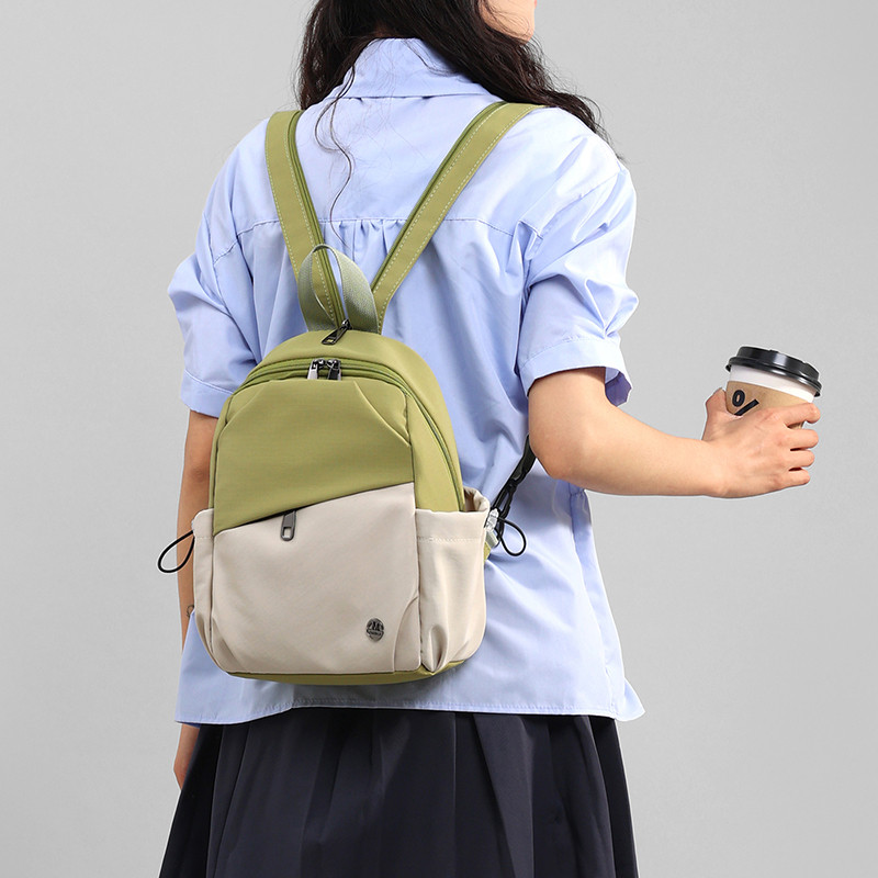 女士两用双肩包旅行大容量斜挎包牛油果绿通勤帆布小背包单肩防水