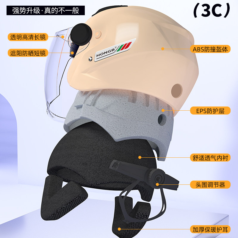 3c认证电动车头盔女士电瓶摩托半盔男四季通用骑行冬季保暖安全帽