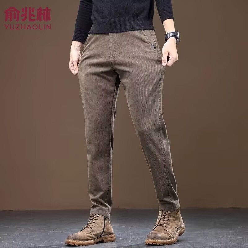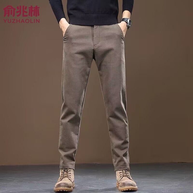 俞兆林秋冬季直筒男士裤子男休闲裤新款商务加厚绒爸爸男装长裤子