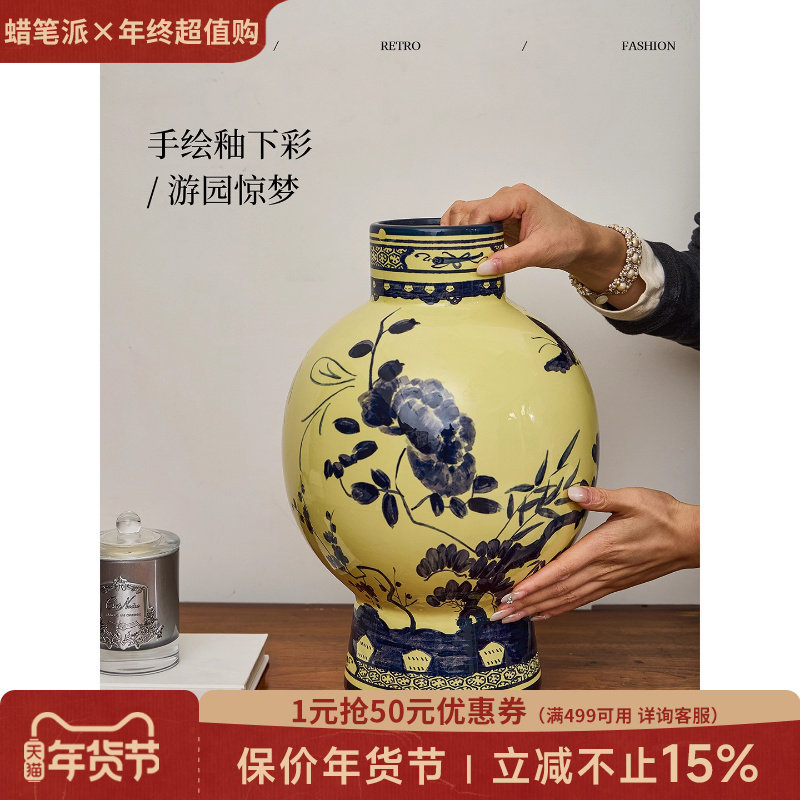 蜡笔派游园惊梦花瓶新中式复古客厅玄关陶瓷插花摆件乔迁新婚礼物