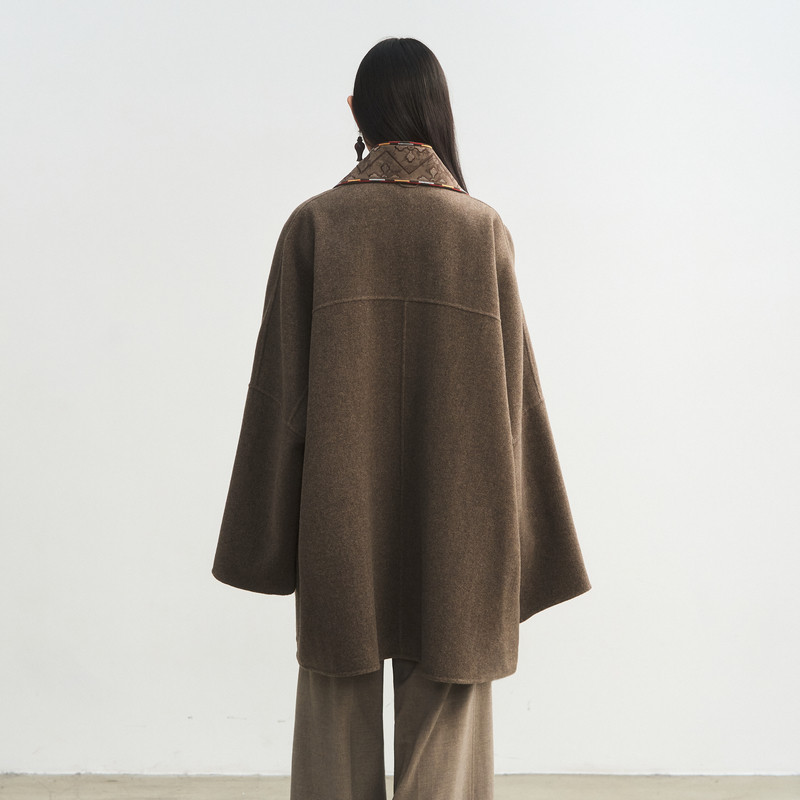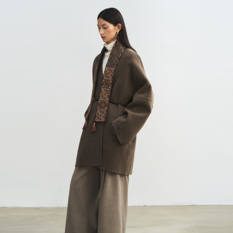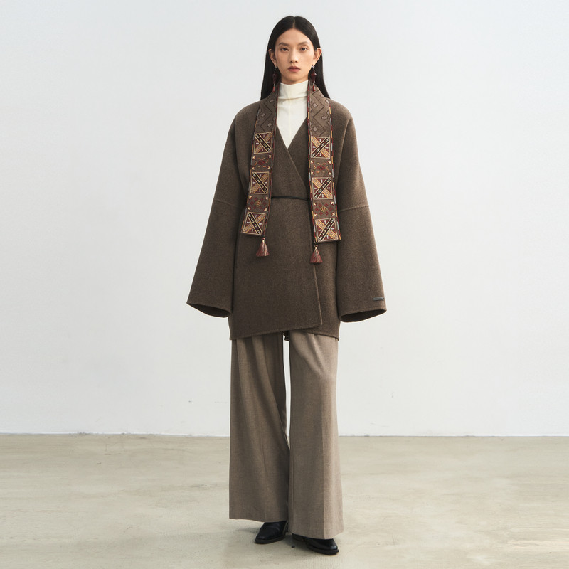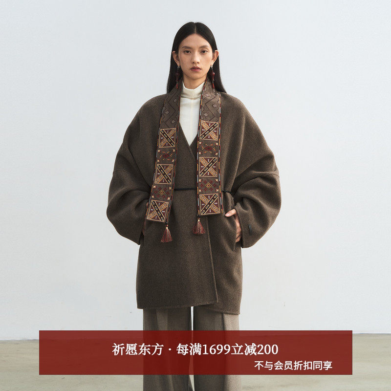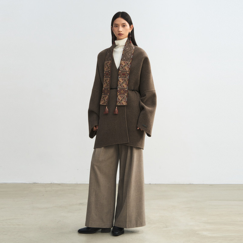 黑标BAIZHUO商场同款25冬新款藏族风围巾V领双面呢外套AZ54DY057