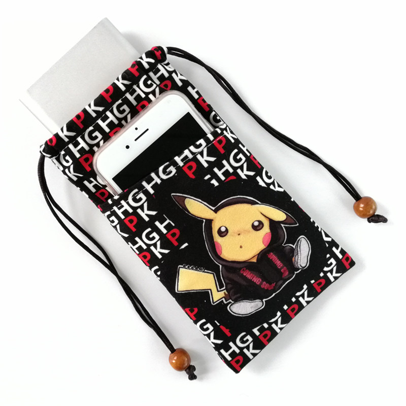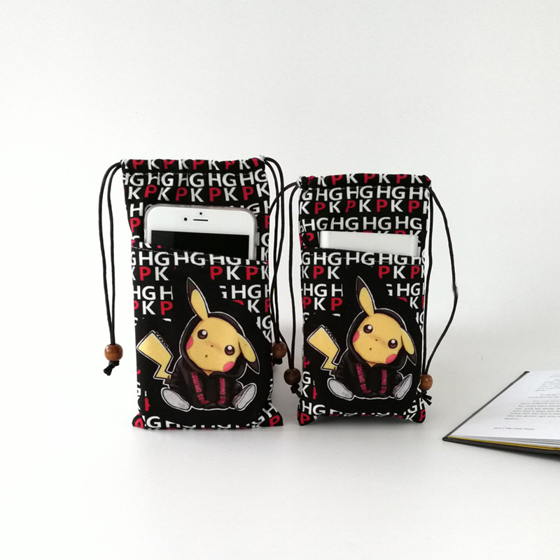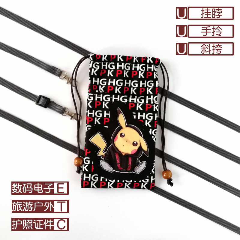 卡通女斜挎挂脖手机充电宝数据线收纳绒布袋套大号小号束口零钱包