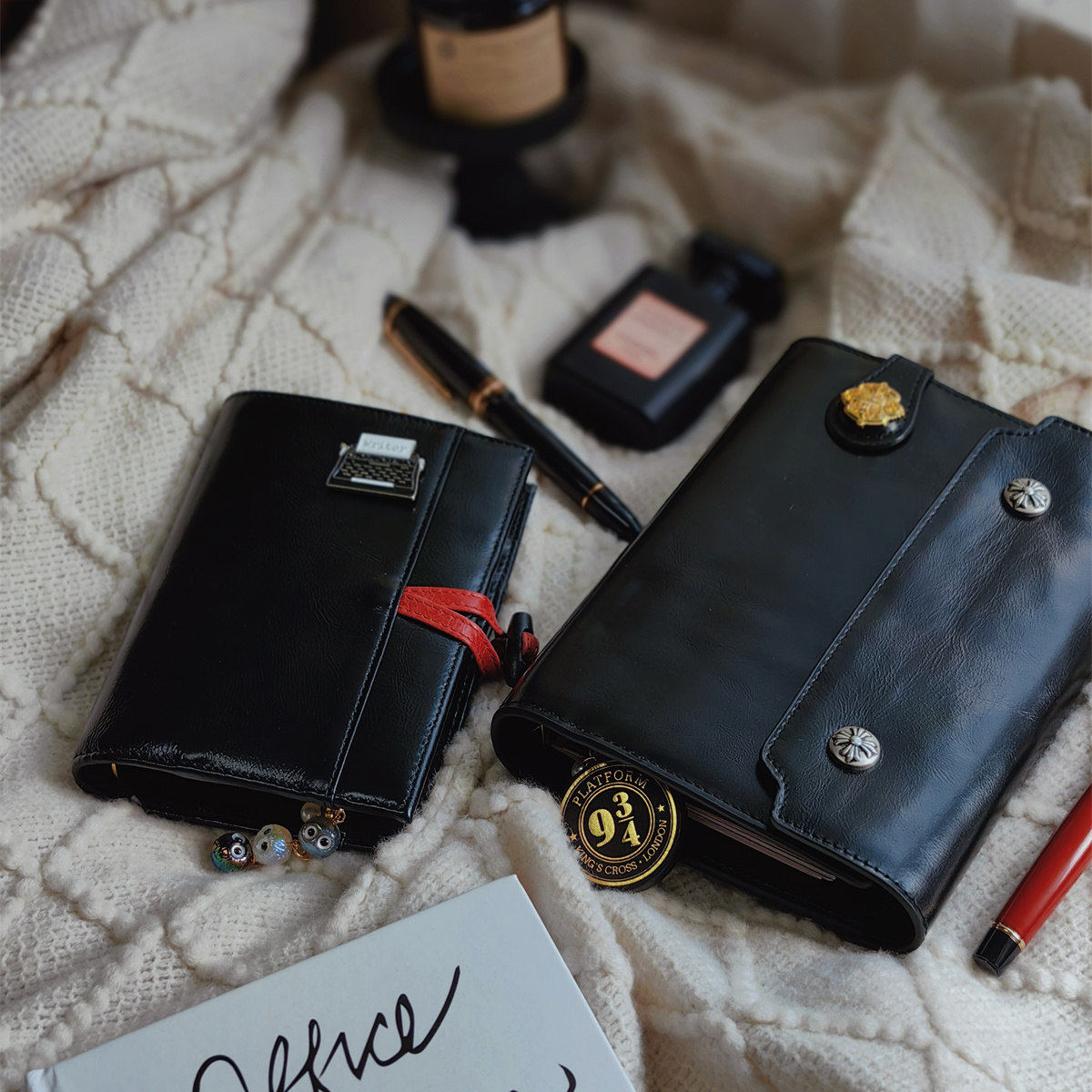 原创【牛角扣&黑森林】现货真皮黑色油蜡皮手帐活页三折对折本
