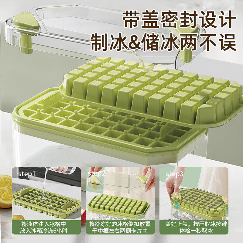 冰块模具大容量按压冰格家用食品级制冰储冰盒带盖冰箱冻冰块神器