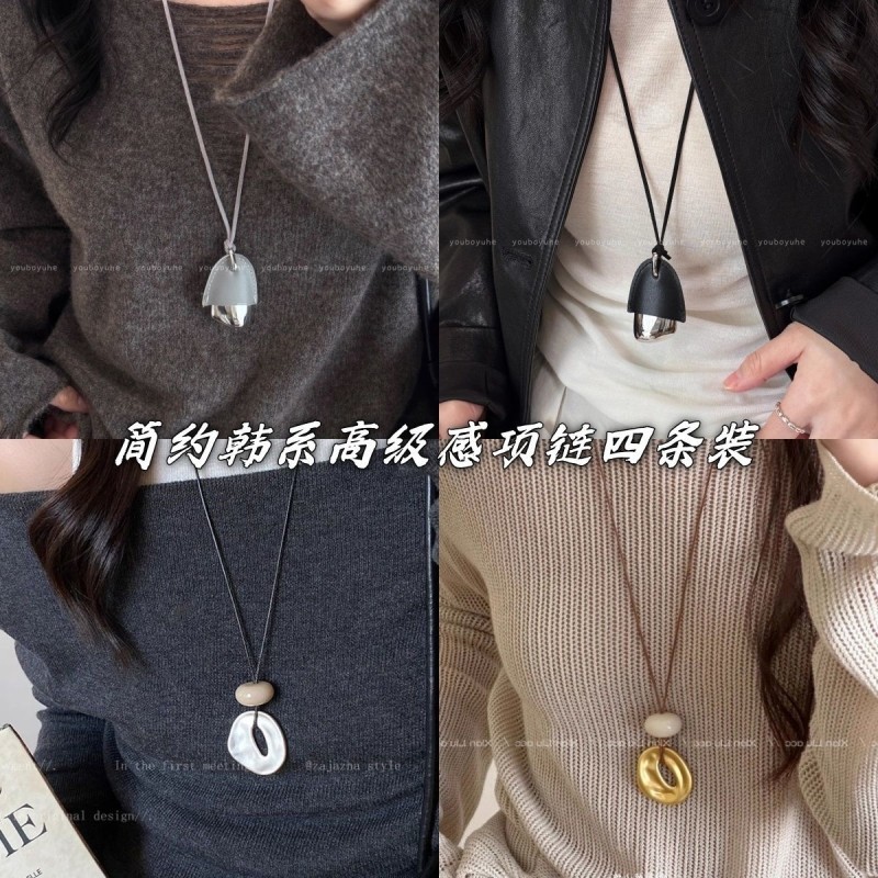 韩国博主同款简约金属松果吊坠项链皮绳长款毛衣链配饰链高级感
